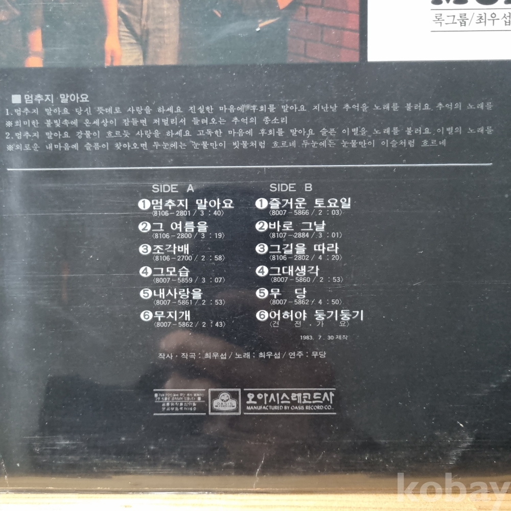 (희귀반) 무당 2집 [멈추지 말아요, 무당] 1983년 오아시스