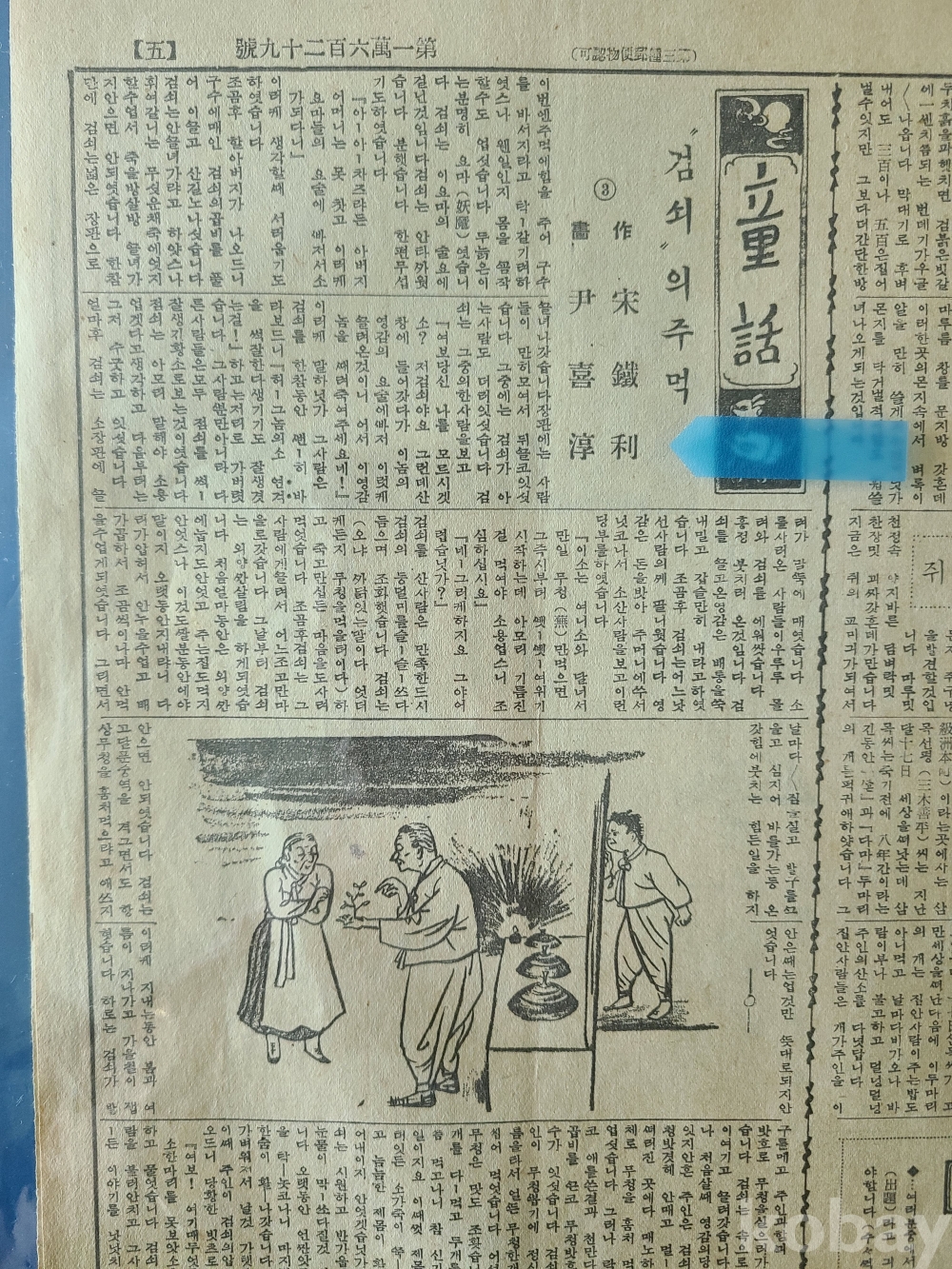 동화작가 宋鐵利 作 童話 [검쇠의 주먹] 수록 1937년4월9일 每日申報