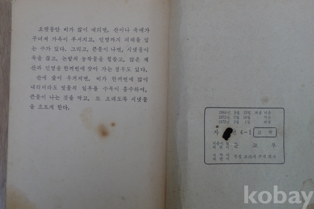 1970년 국민학교 4-1 자연 교과서