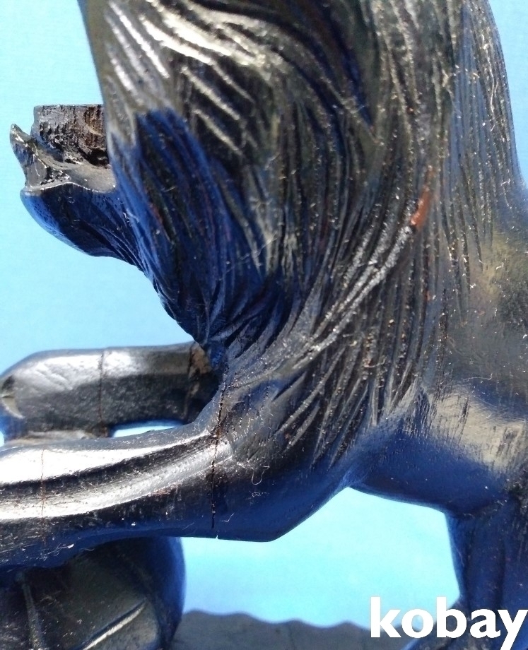 받침 앞 부분, 사자 양쪽 발목에 붙임 자국이 있습니다.