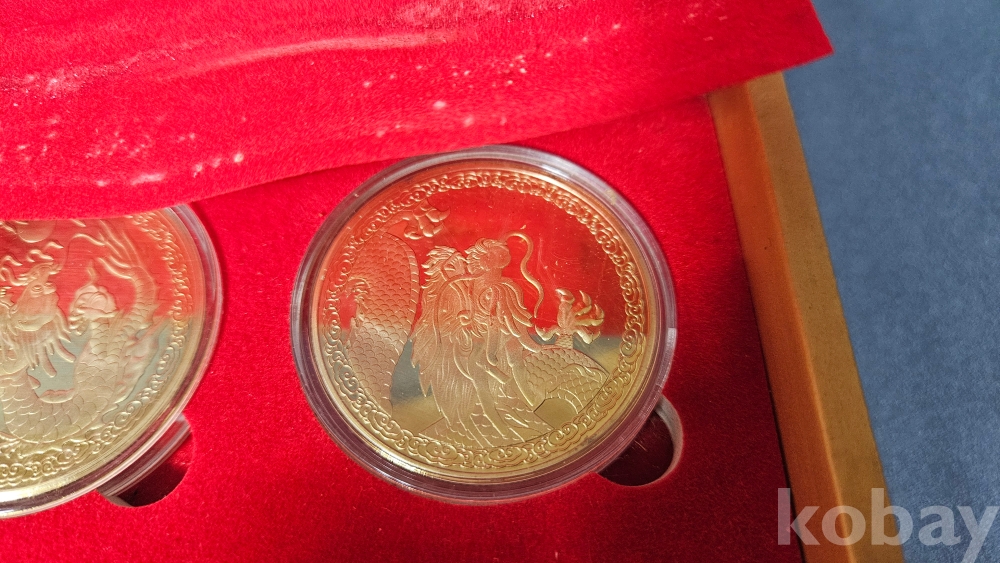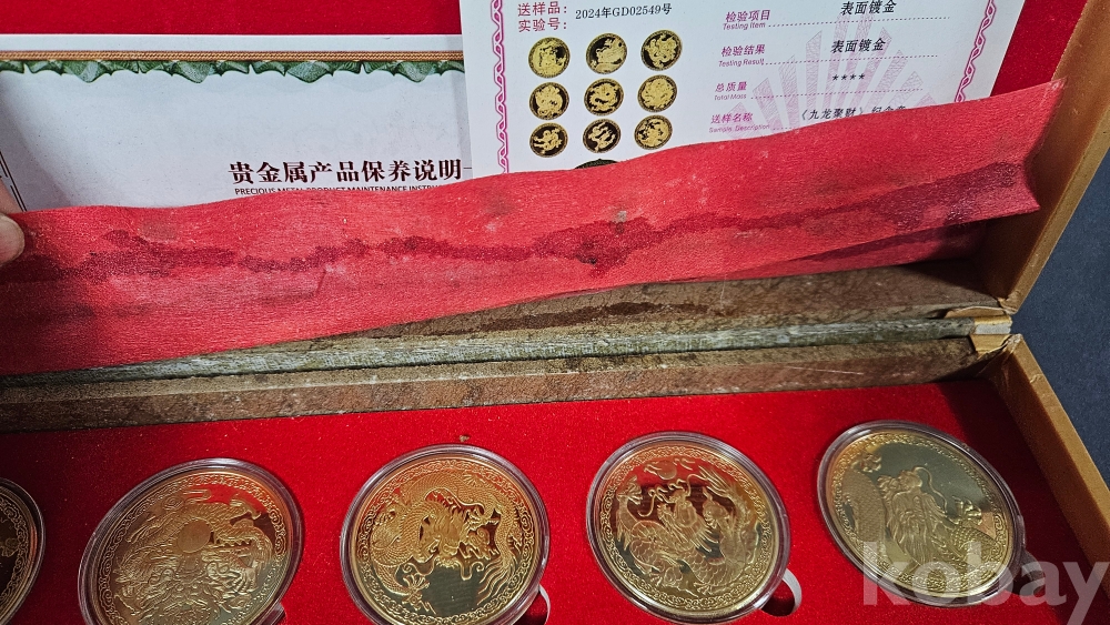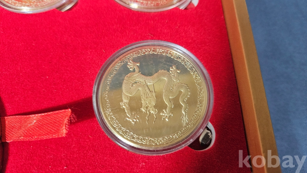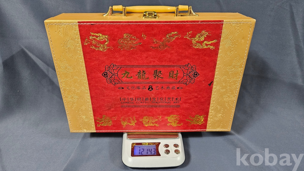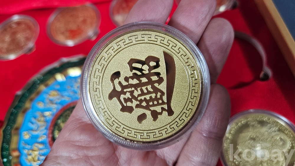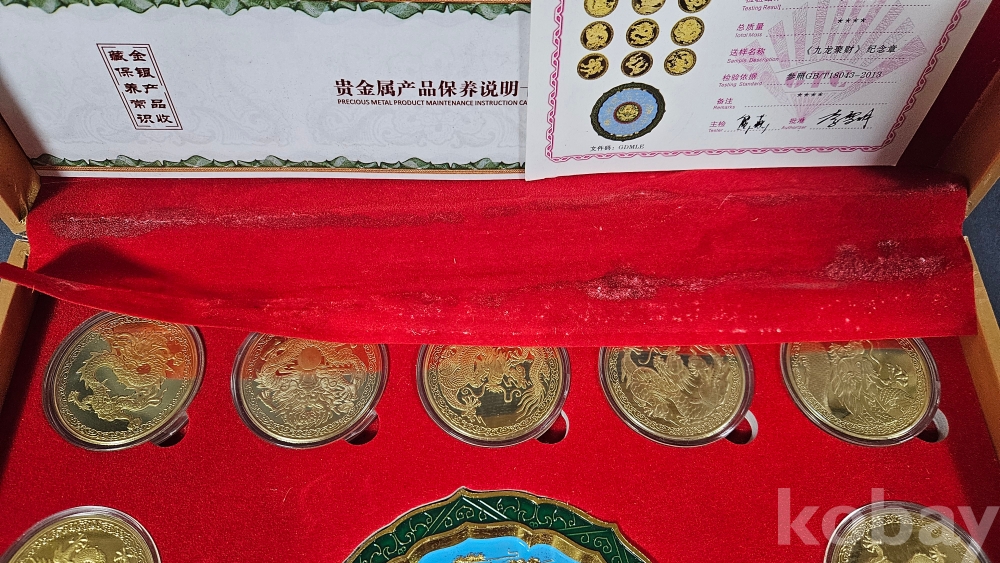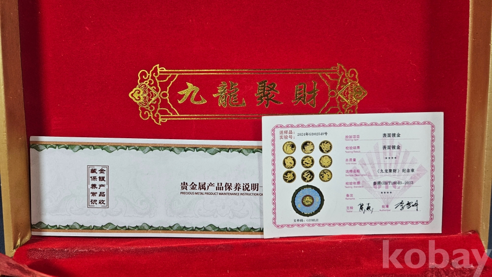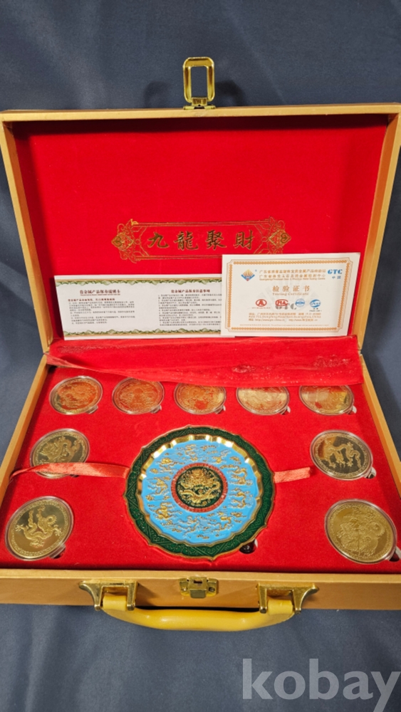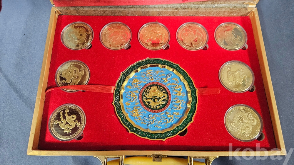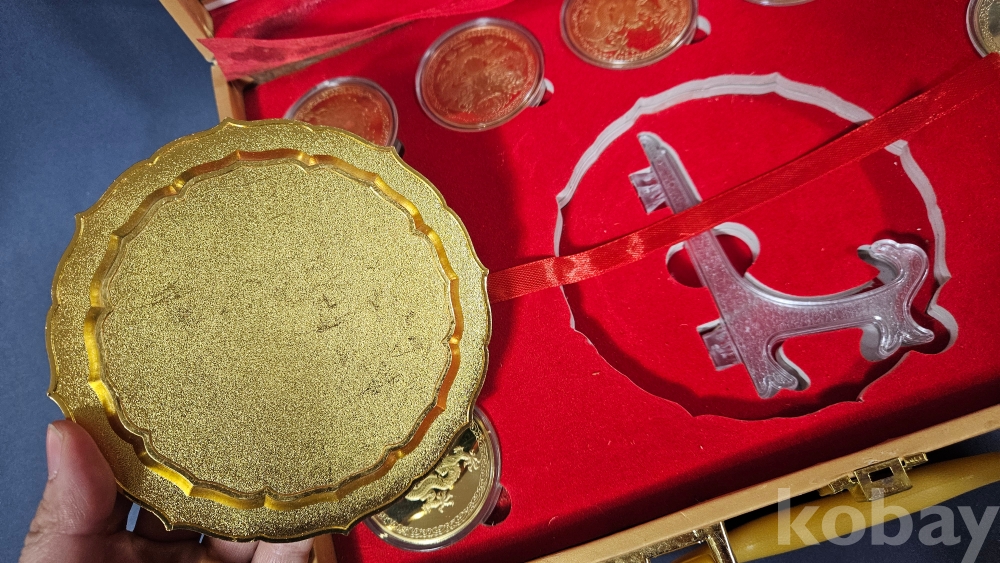 007처럼 생긴 가방안에 금색 용문양 메달 9종과 칠보접시가 들어있습니다.