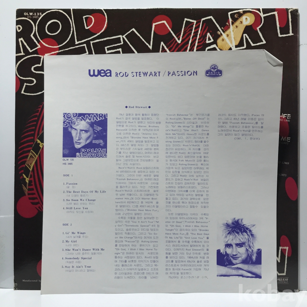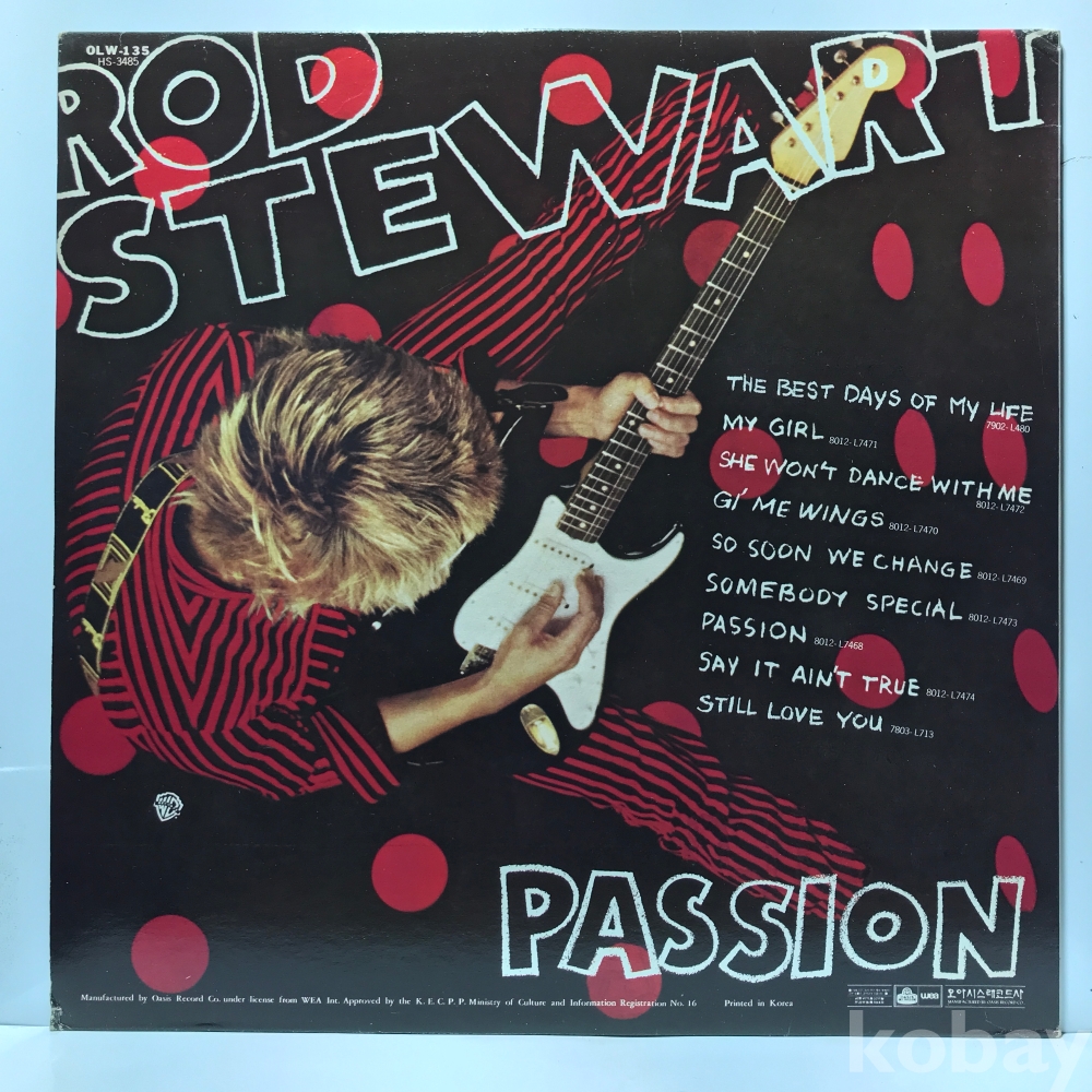 LP 32,660-24 Rod Stewart - Passion . 자켓 EX+ 알판 NM 81 년제작 국내반