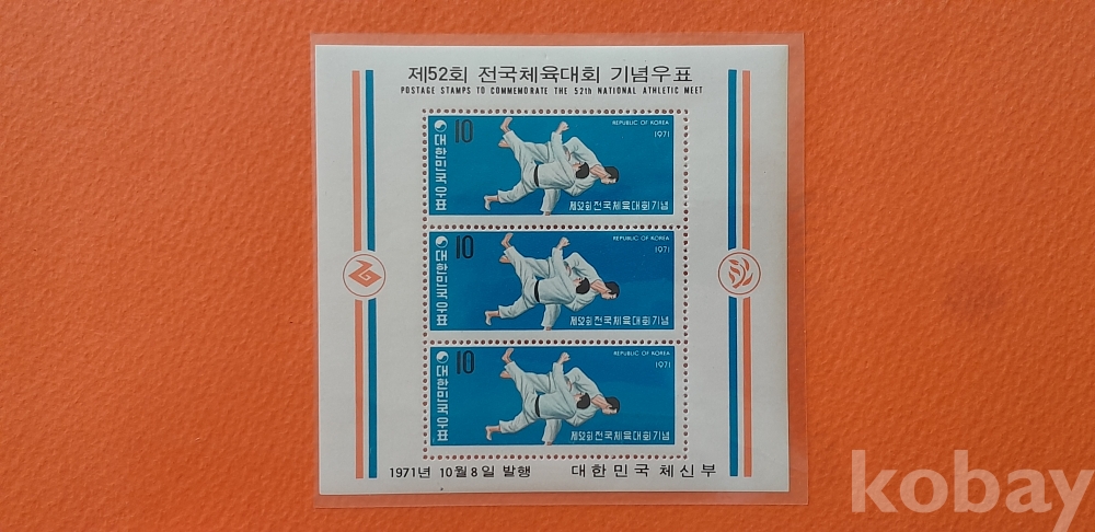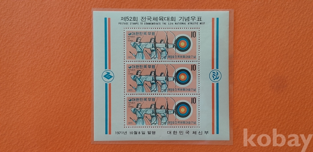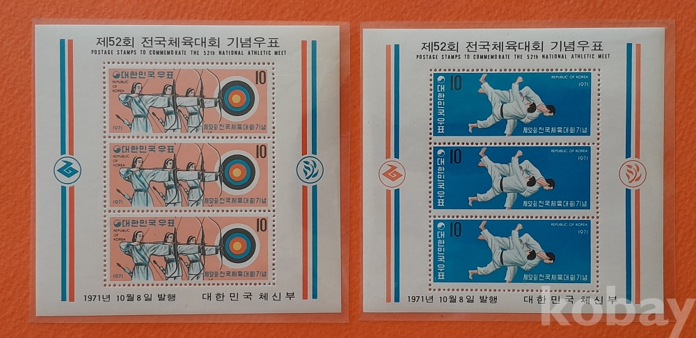 1971년 52회 전국체전 소형시트 2종 세트 입니다.