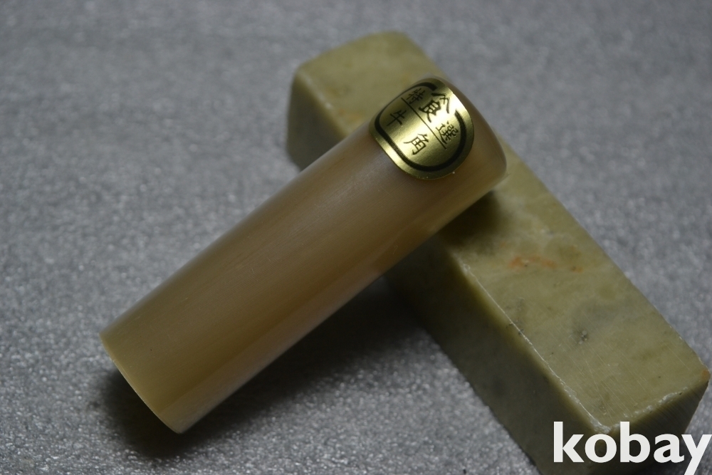 색상과 문양이 매우 아름다운 최고급 오란다 백수우(白水牛) 물소뿔 도장 작품 입니다.
