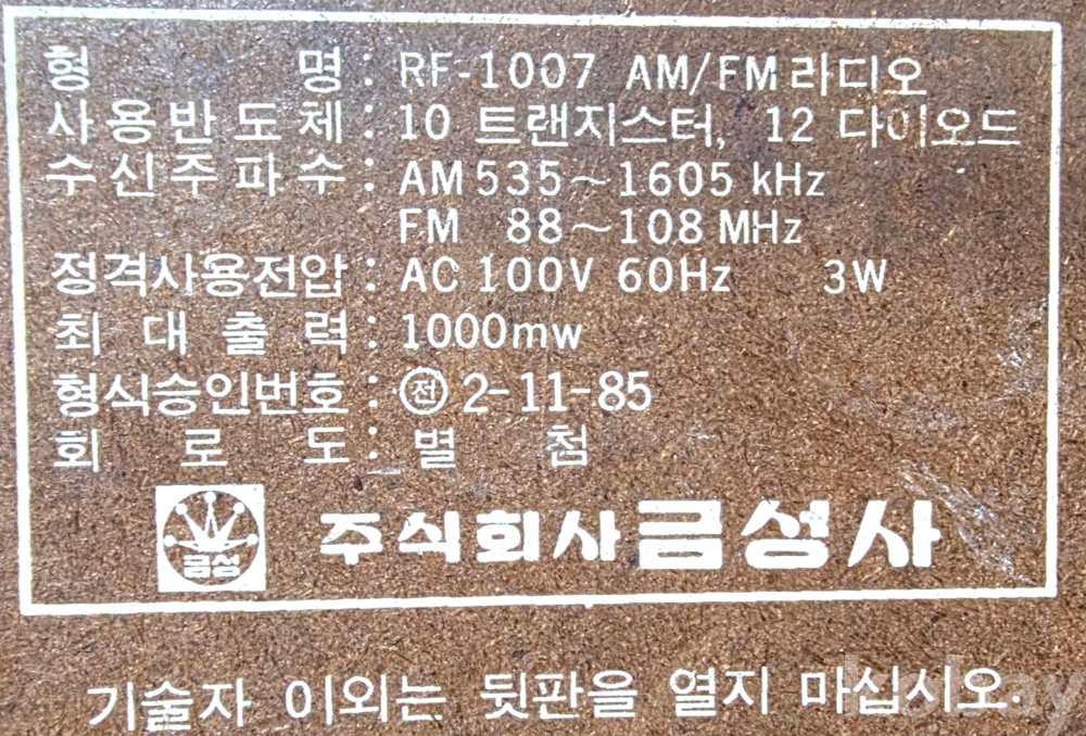 주식회사 금성 라디오.모델 RF-1007 {110볼트}