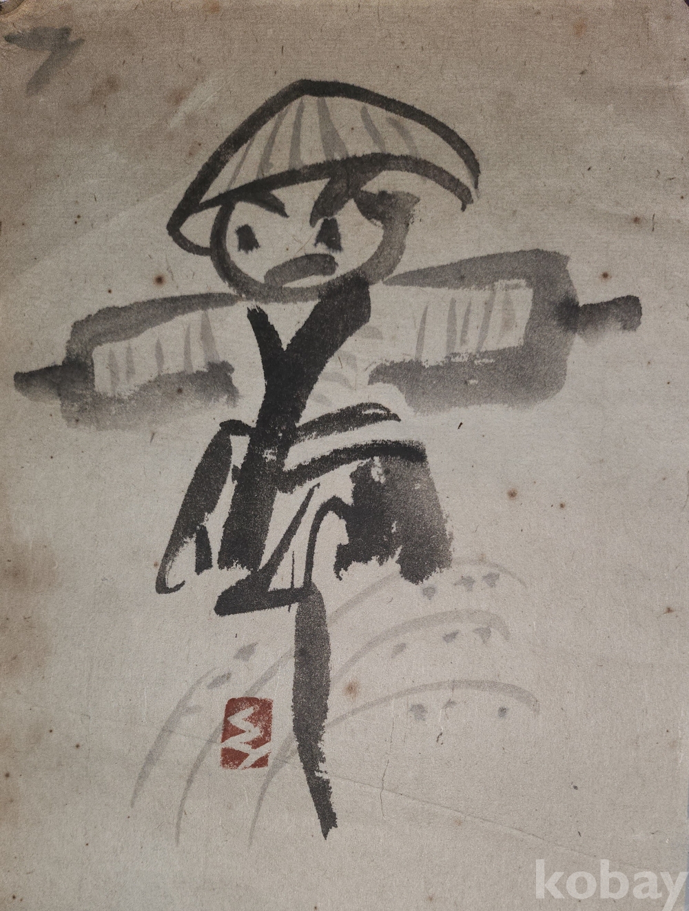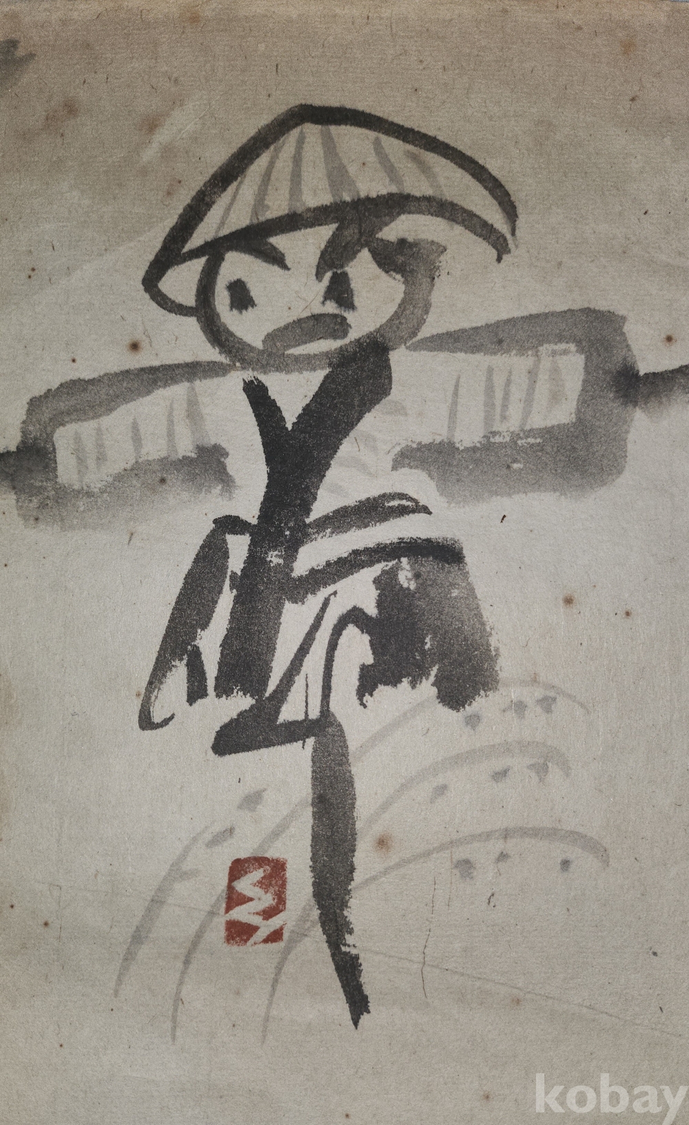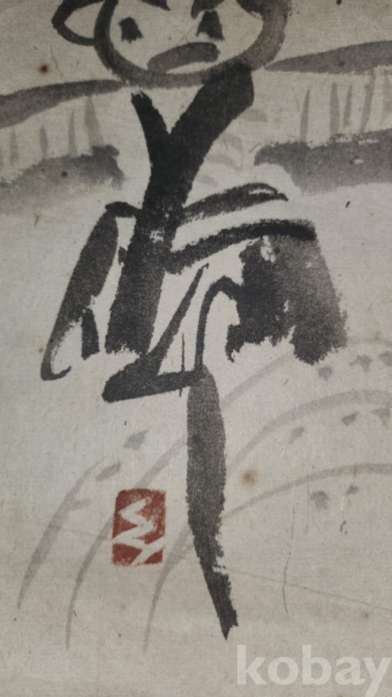 짱짱한 연대 갖춘 종이에 먹(墨)으로 완성된 허수아비 작품입니다,