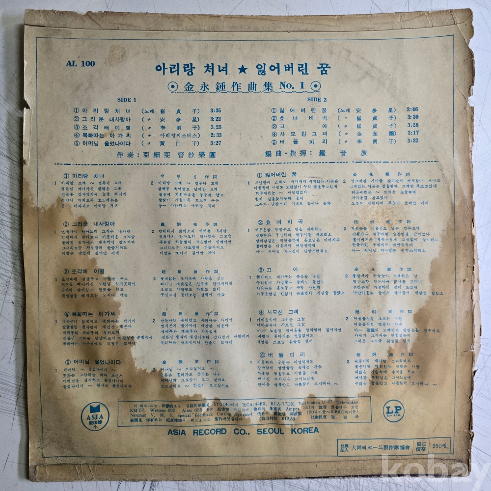 VG : 생활 기스 다수, 가벼운 노이즈 존재 발매정보 초반 가사지여부
