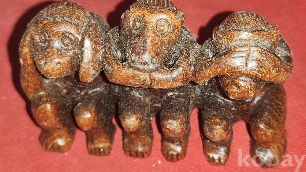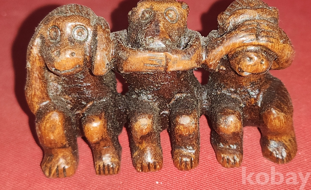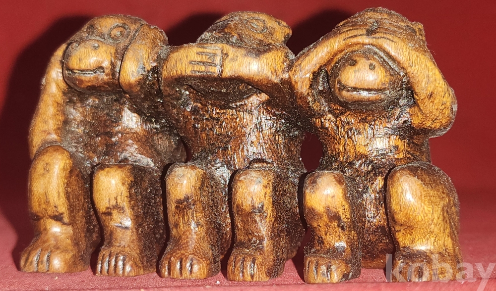 나무로 조각된 원숭이 삼종 포즈입니다,