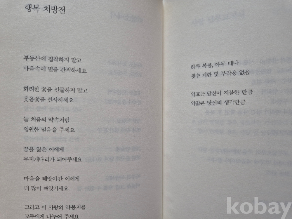 시집 『그대가 행복했으면 좋겠습니다』(2003) 『싶어』(2006) 『행복처방전』(2008) 『행복체인점』(2010) 『입술』(2013) 『텔레파시』(2024) 등 6권.