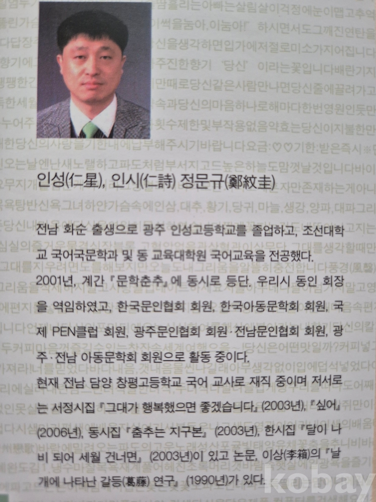 조선대학교 국어국문학과 및 同 교육대학원 국어교육과 졸업(鄭紋圭).