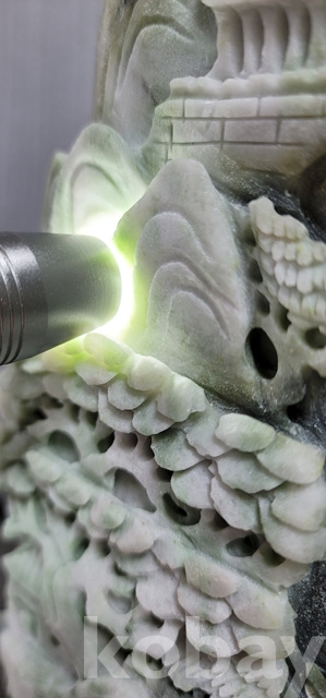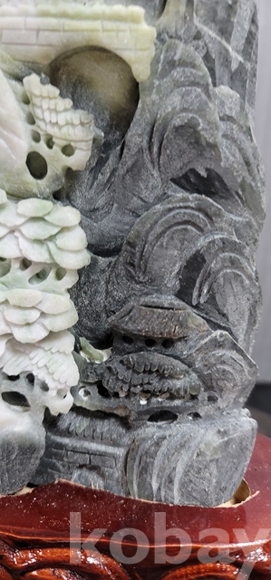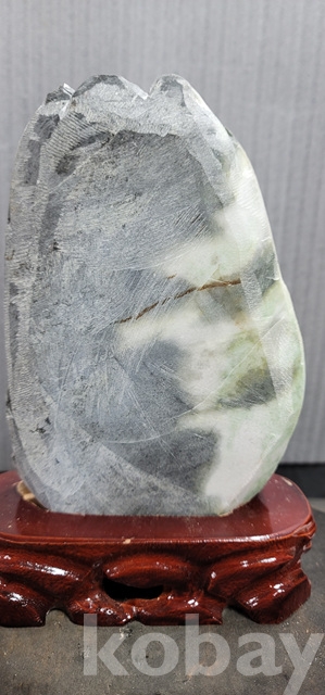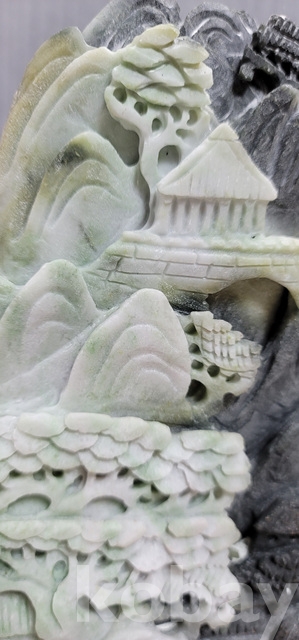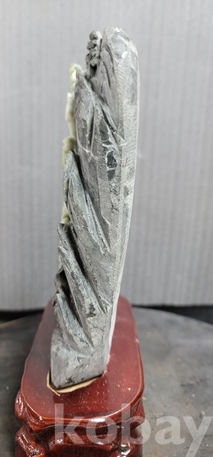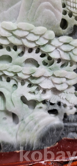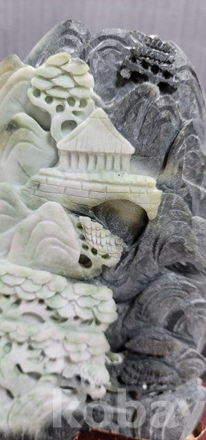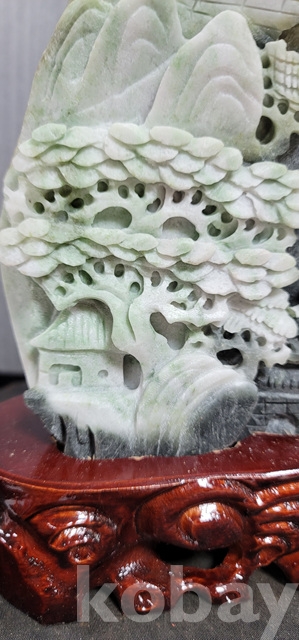 k-33.천연옥으로정교하게깍아만든 산수문양 장식품(통나무로깍은좌대포함)