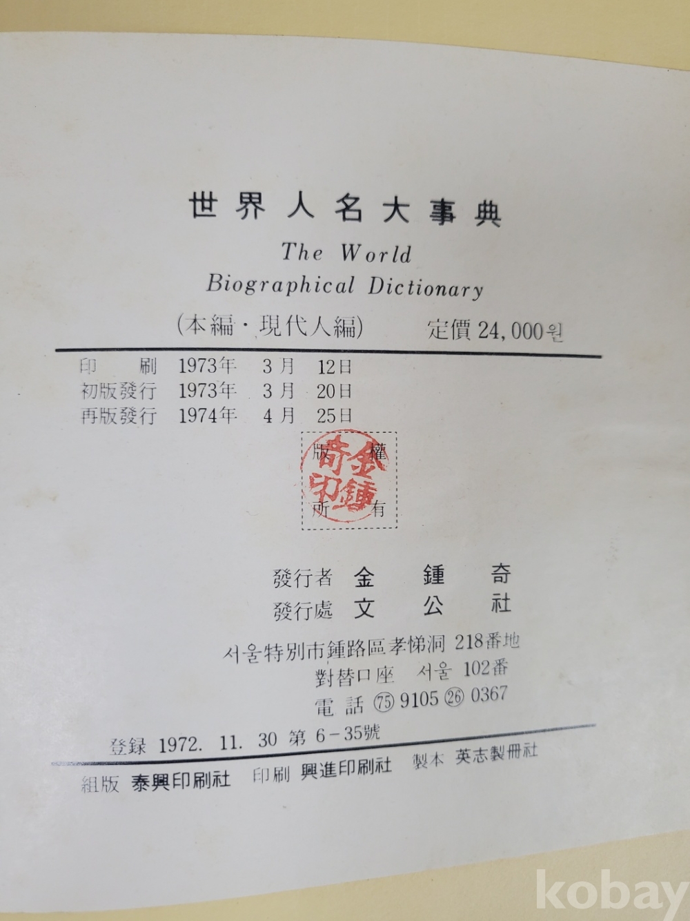 1. 세계인명대사전(현대인편), 문공사, 1974년, 328쪽, 상태 상, 사진 참조