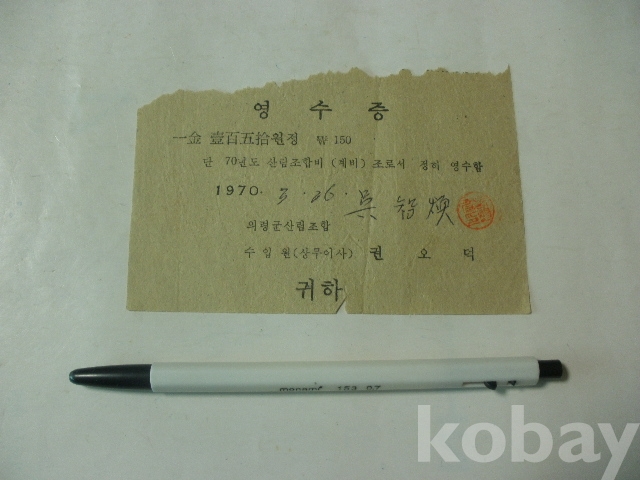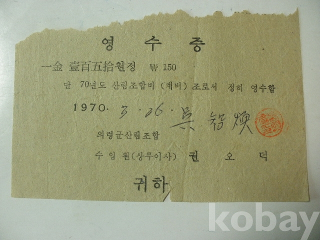 의령군 산림조합비 - 영수증 (1970년)