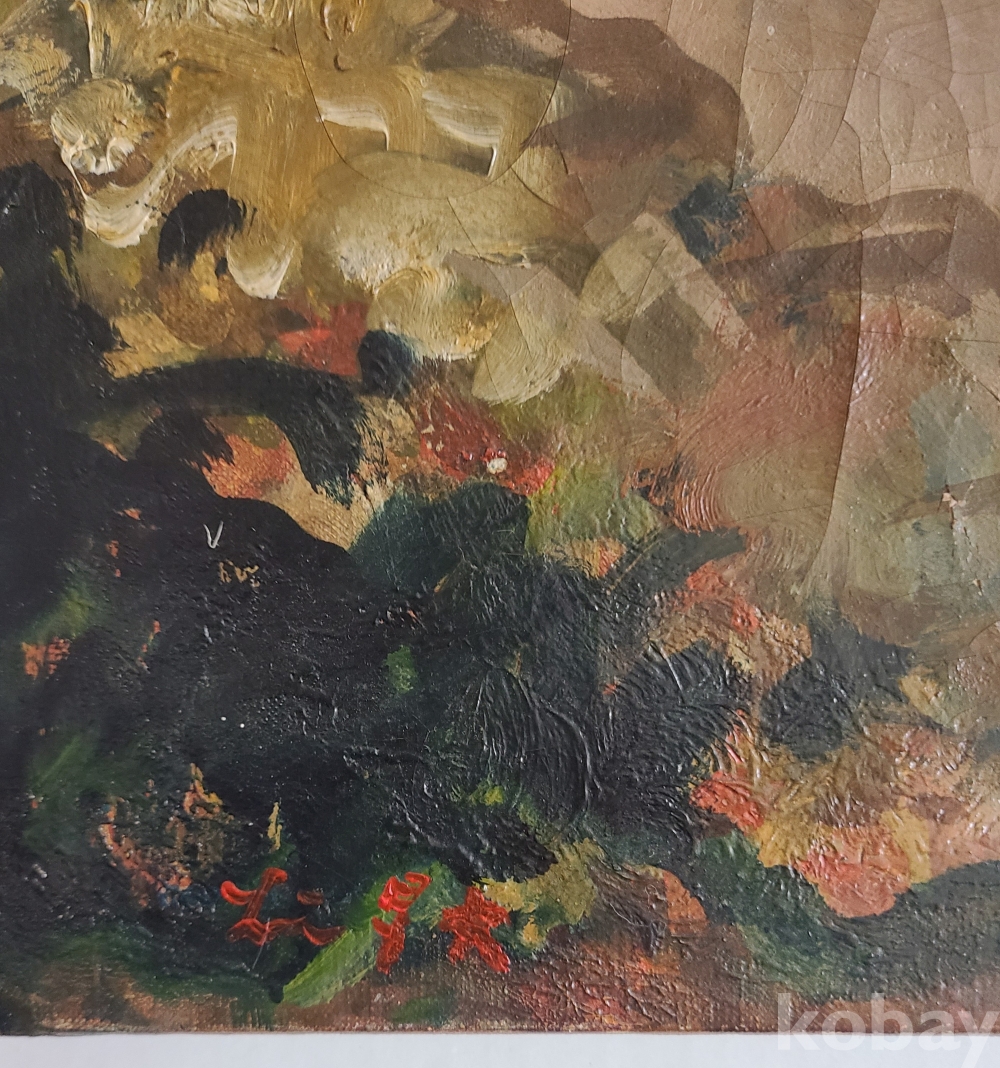 캔버스 앞면 왼쪽 하단과 뒷면에 이인성 사인이 있고