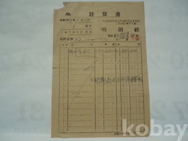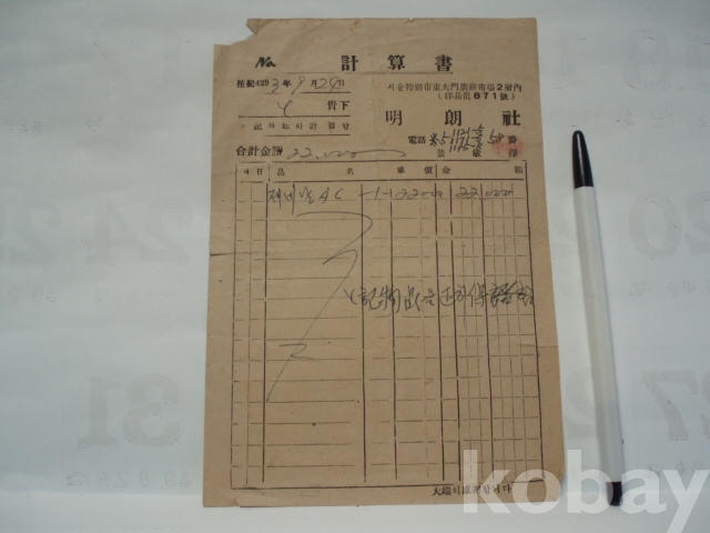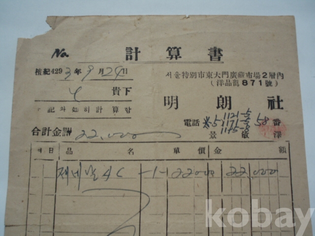 명랑사 - 제네날시 계산서 (1960년, 서울 동대문구 양품부)