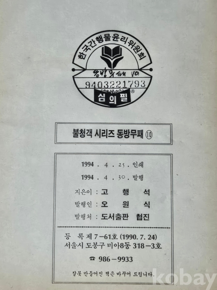 고행석 극화 만화 시리즈 == 불청객 시리즈 동방무패 11권 완결 =