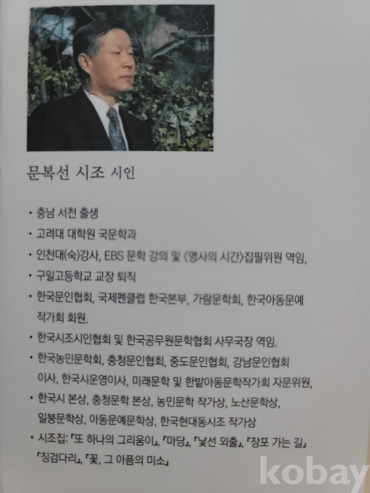 문복선(충청남도 서천: 1938~2022) 저자서명 시조집.
