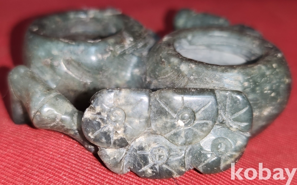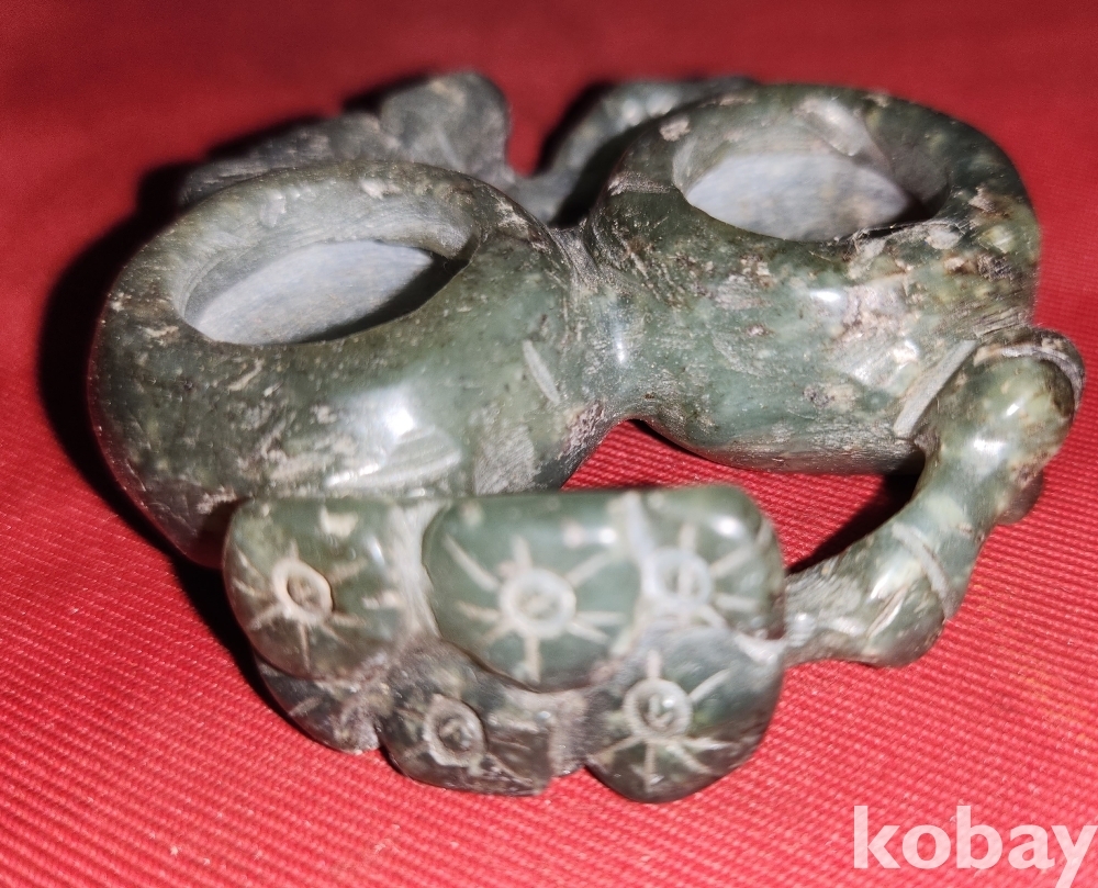청옥으로 만든 매화문양 휴대용 필세입니다,