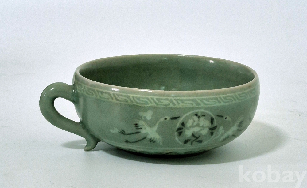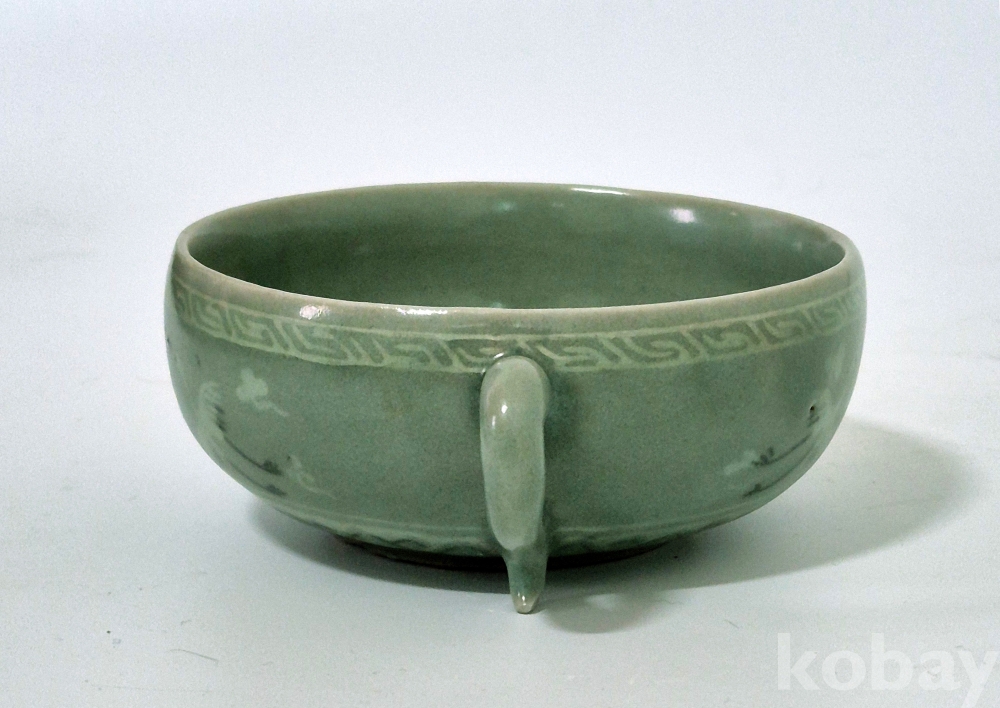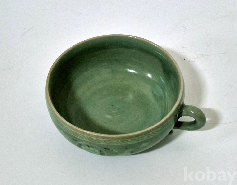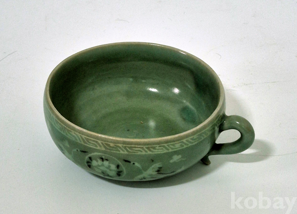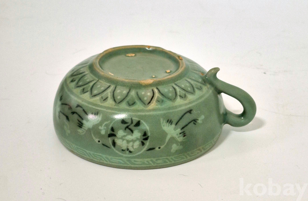 고려 청자 특유의 유색이 살아 있고, 규석 3개를 받쳐 구워낸 고려 청자로 유색과