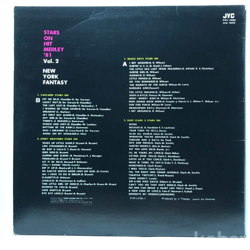 LP LP 1-22-27 STARS ON HIT MEDLEY - '81 VOL. 2 (NEW YORK FANTASY) . 자켓 EX 알판 EX 81 년 국내반