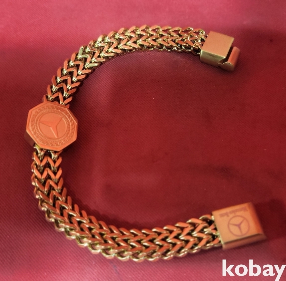 벤츠 마크가 새겨진 항금색 남,녀 공용 미사용 팔찌입니다,