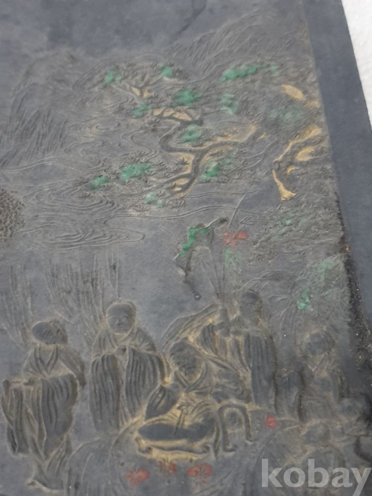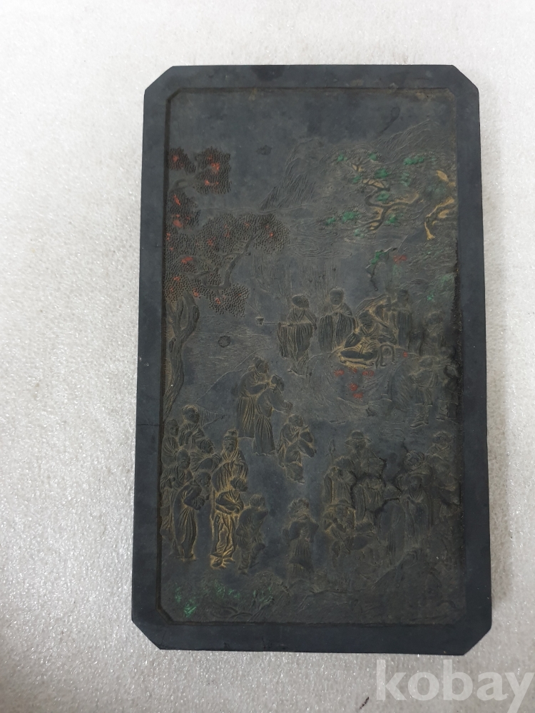 {천원경매} 1-2064 유마설법 벼루 조각작품 (14*23.5)