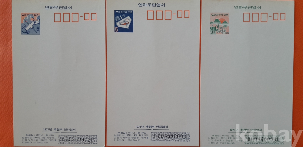 1970년 1971년용 연하 엽서 미사용 3종 세트 입니다.