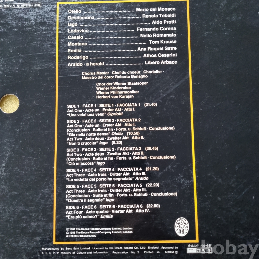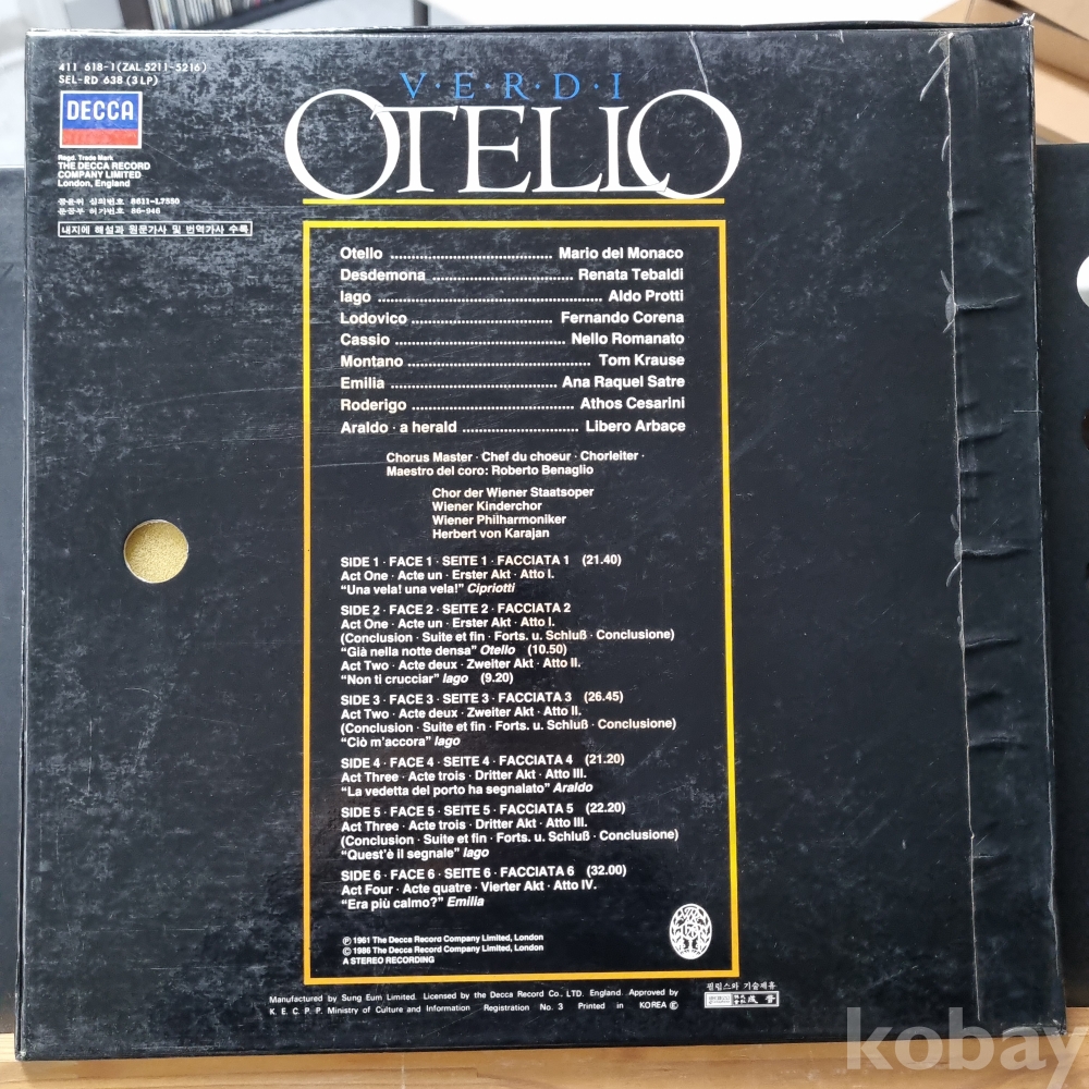 쥬세페 베르디 오텔로 <OTELLO> 3LP DECCA 성음라이센스 박스반