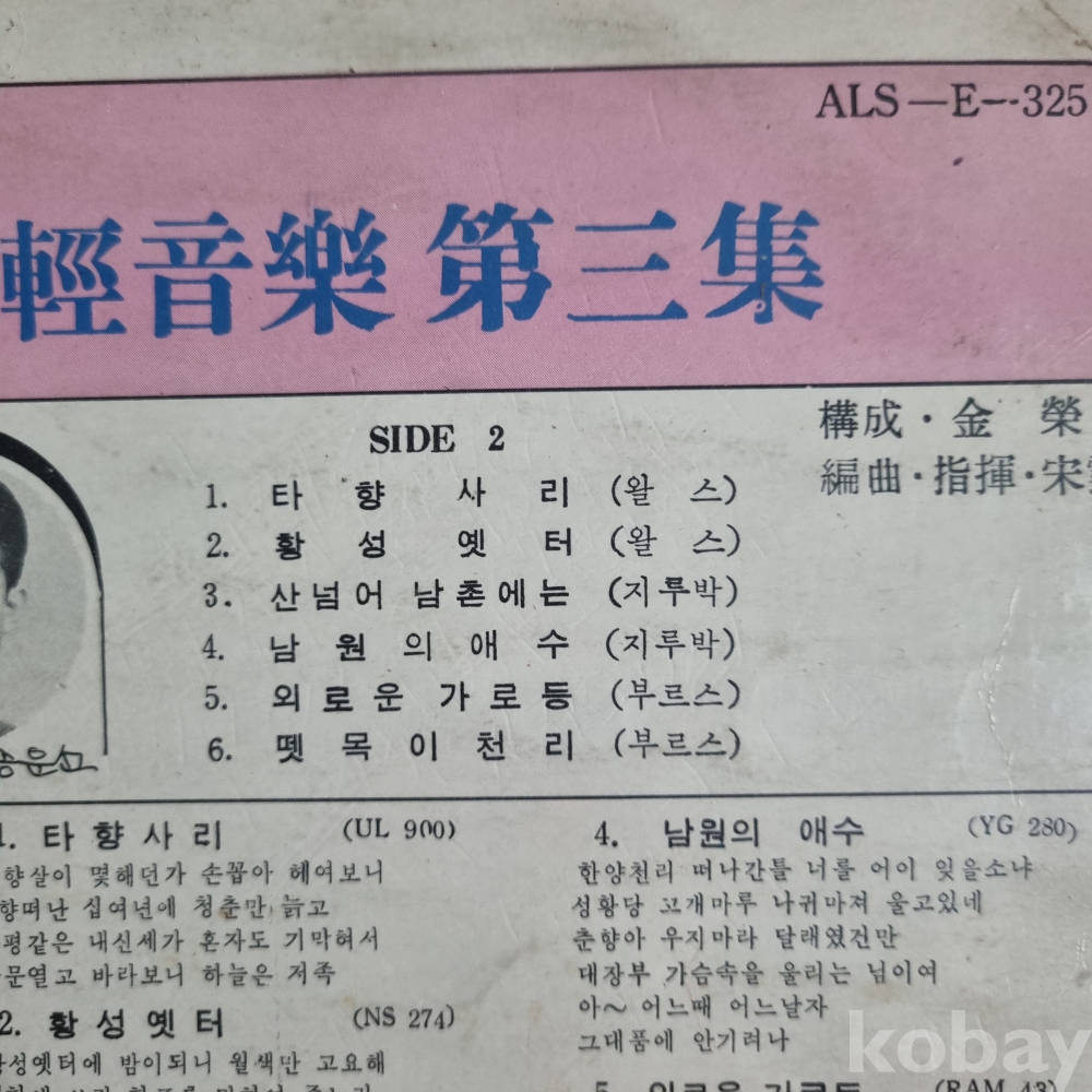| 자켓상태 | VG : 주름, 접힘, 모서리 찢김 다수 | 음반상태 | VG : 생활 기스 다수, 가벼운 노이즈 존재 | 발매정보 | 초반 | 가사지여부 | 무 |