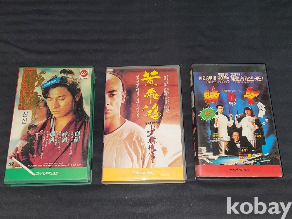 빈티지 1991년 주성치의 도성 2, 1993년 유덕화의 전신, 1996년 황비홍 소림고사 등 영화 비디오테이프 3종 일괄입니다.