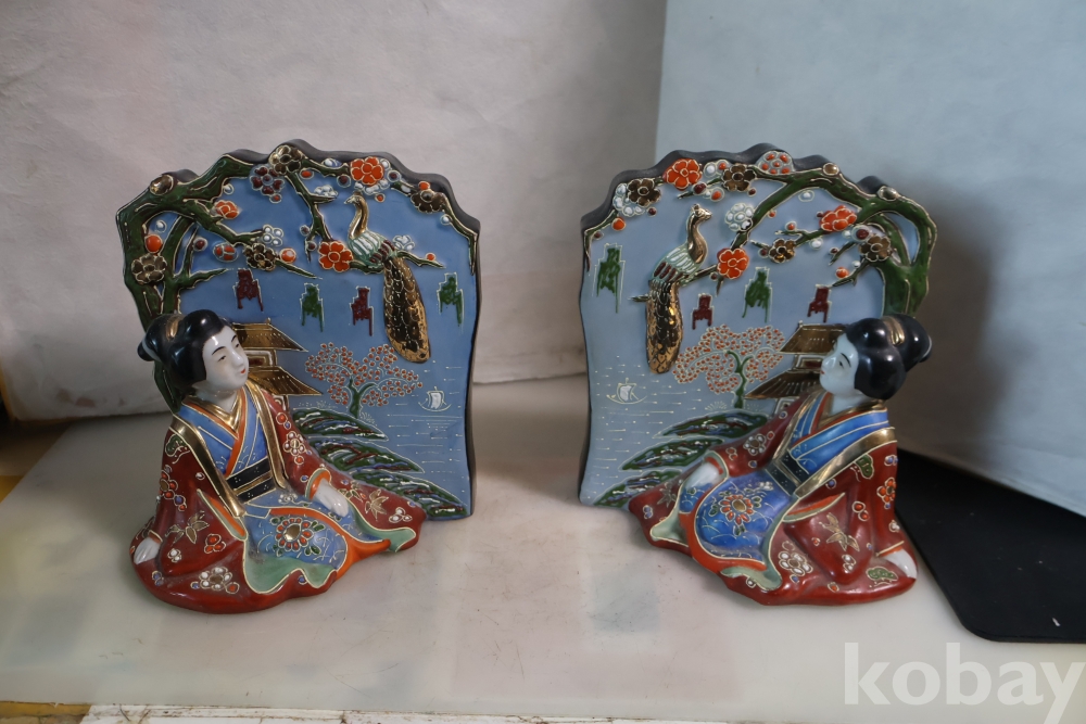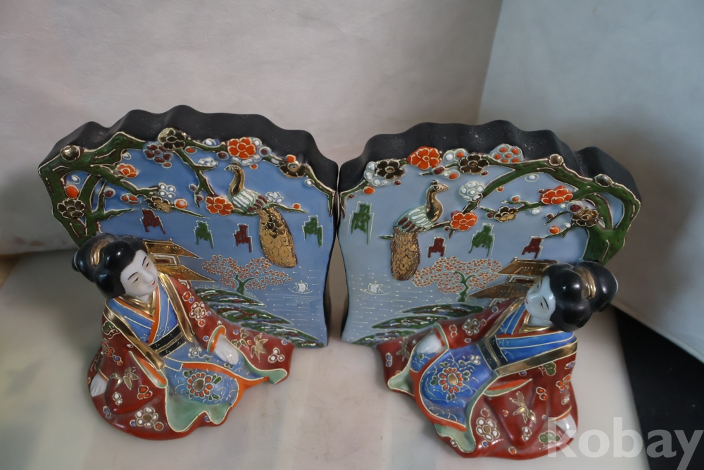 북 앤즈 도자기 게이샤 임니다 3 디 효과를 가진 극히 귀한 명치기 혹은 1920대의 구미 수출 도자기 세트 임니다