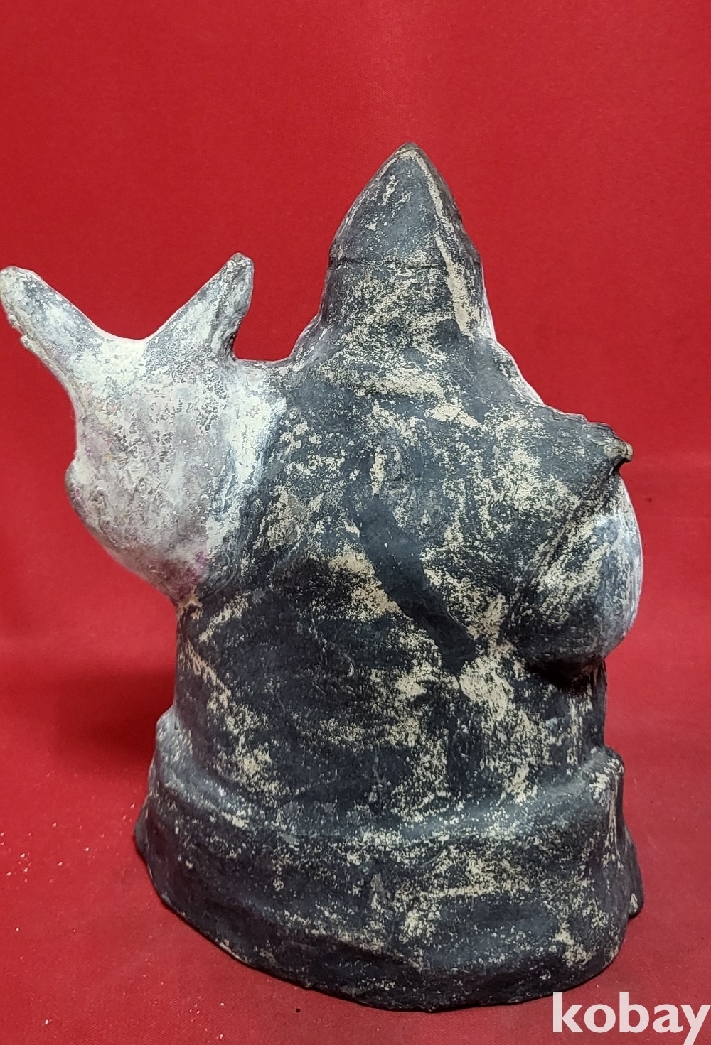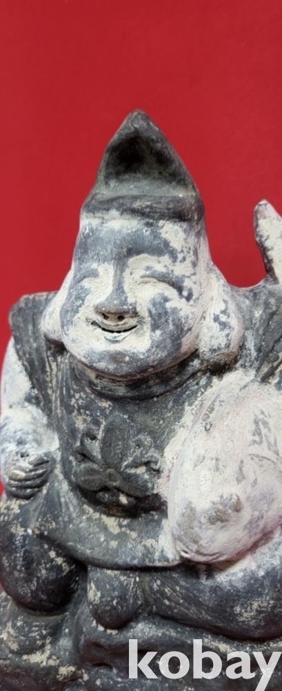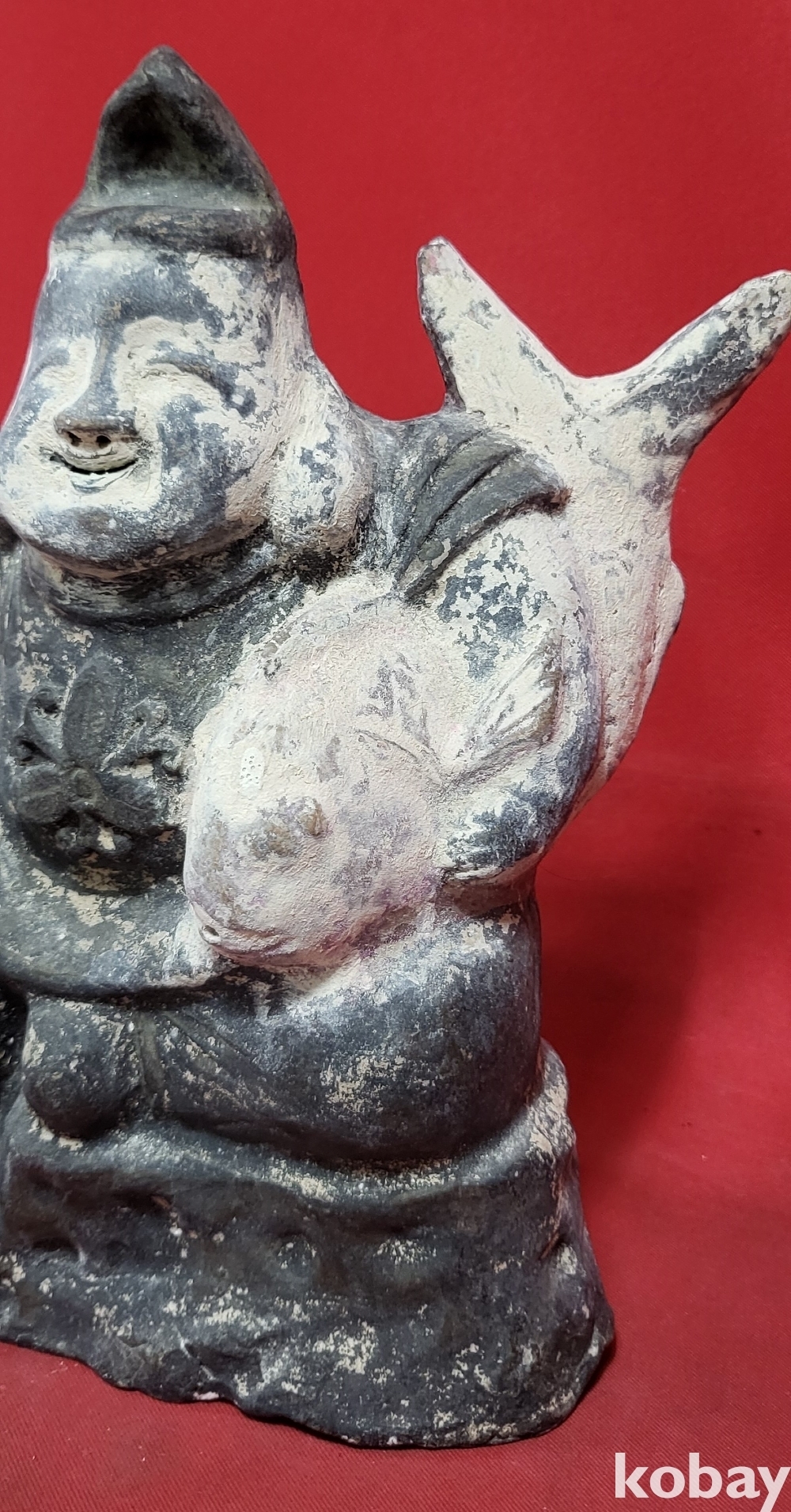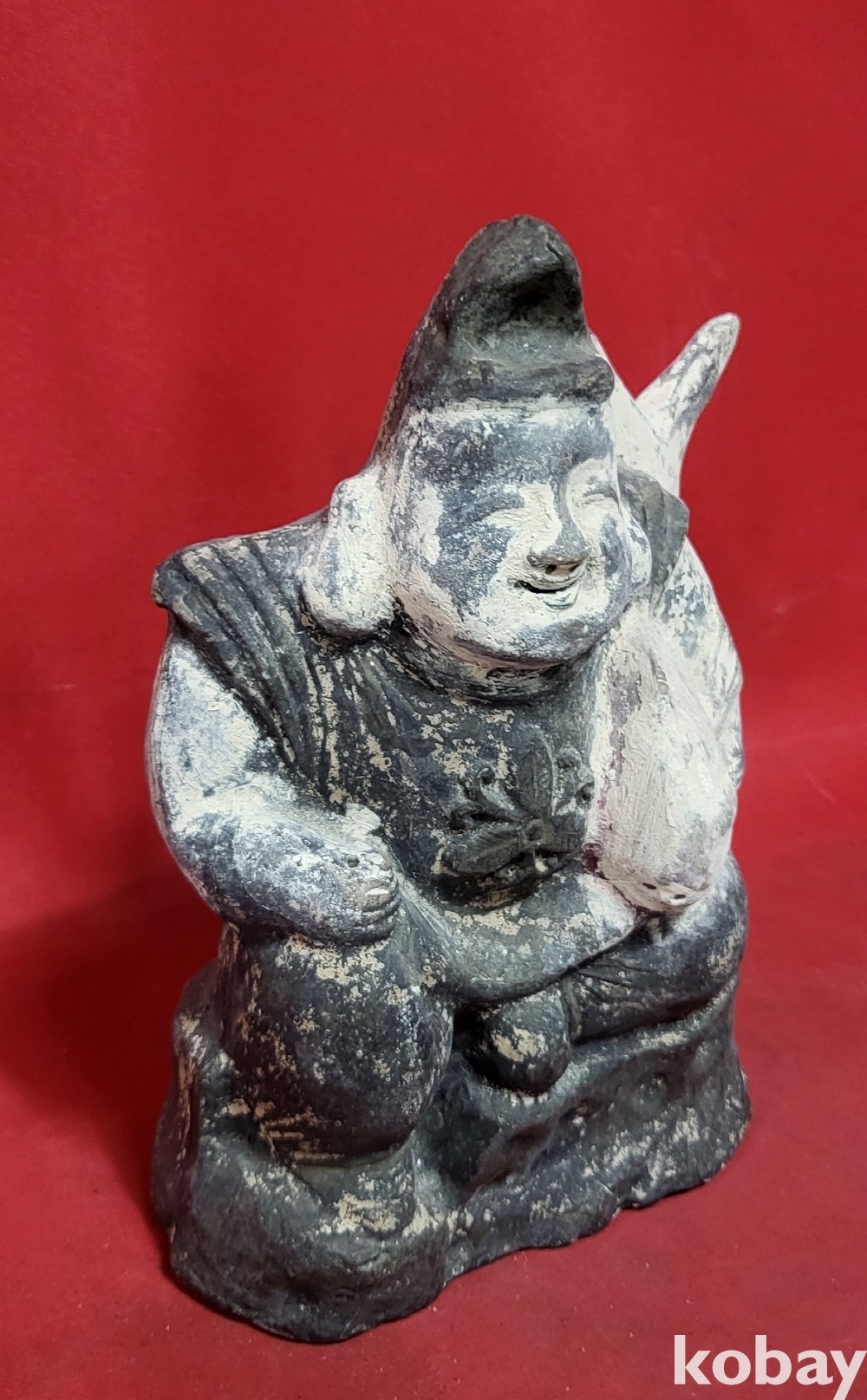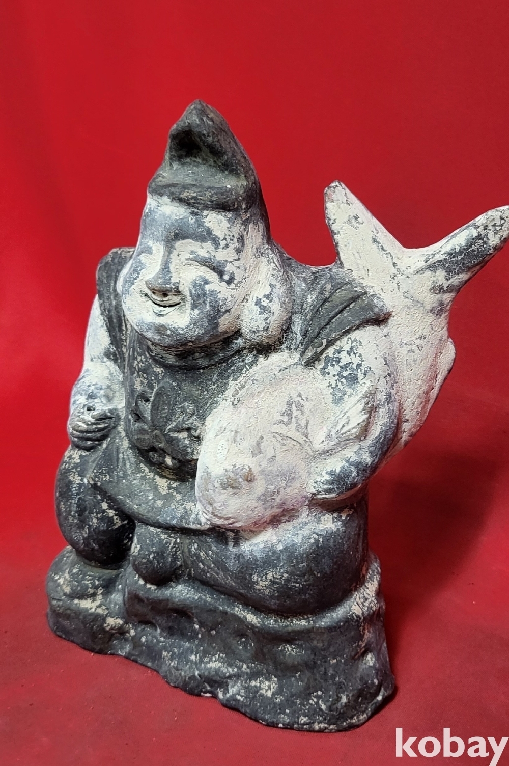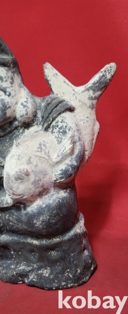 높은 연대 갖춘 나무에 당채로 만든 물고기를 안고있는 인물상입니다,