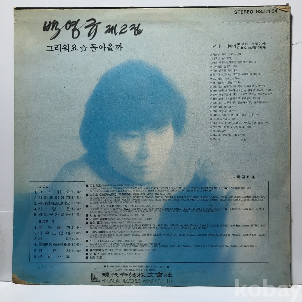 LP LP 1-22-1 백영규 2집 그리워요 돌아올까 . 자켓 EX 알판 EX EX- 81 년 국내반
