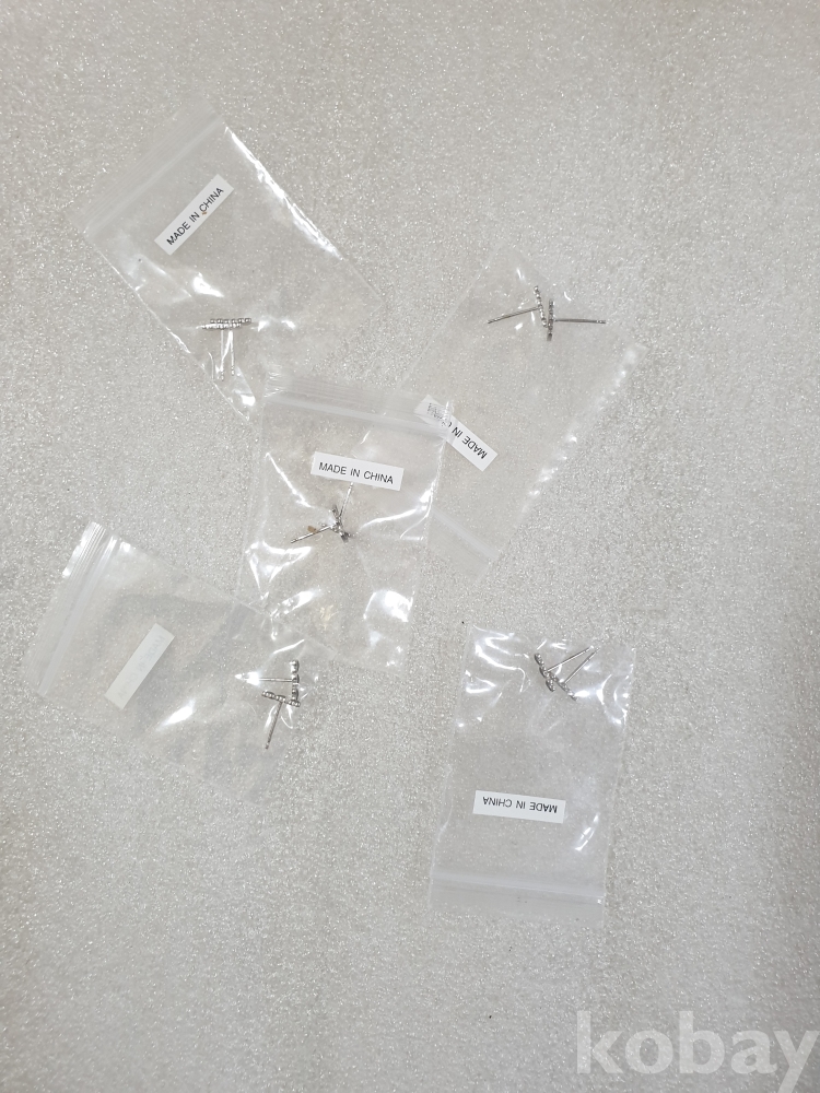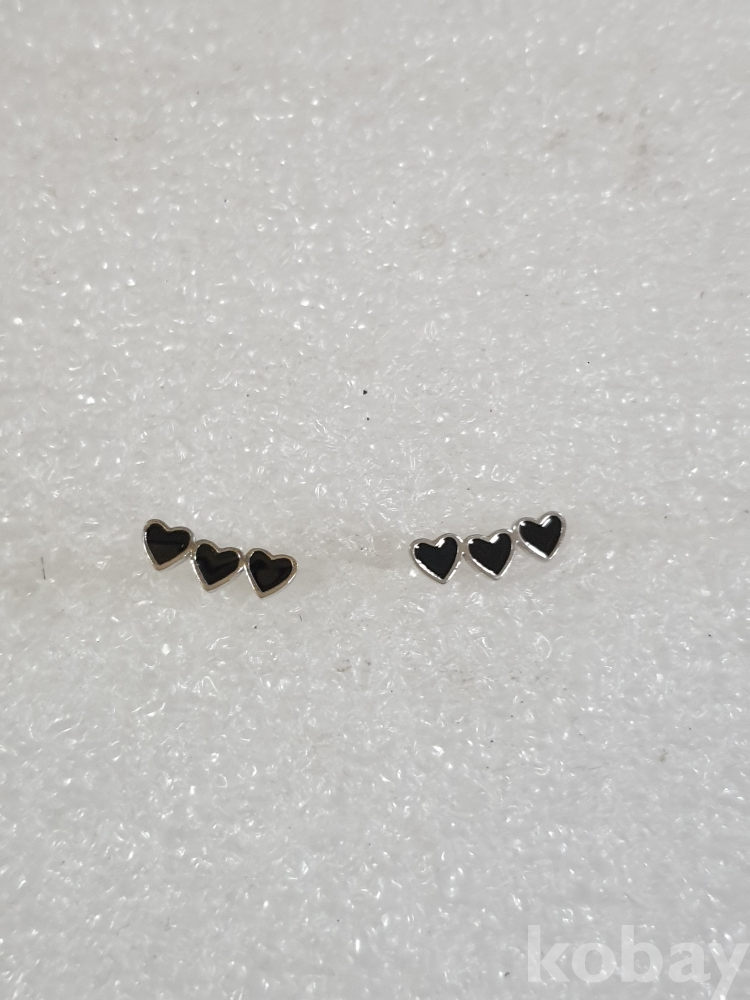 {천원경매}1-2138 실버 925 미니 검정 실버색 하트 일자 귀걸이 5쌍(뒷꽂이 없음)