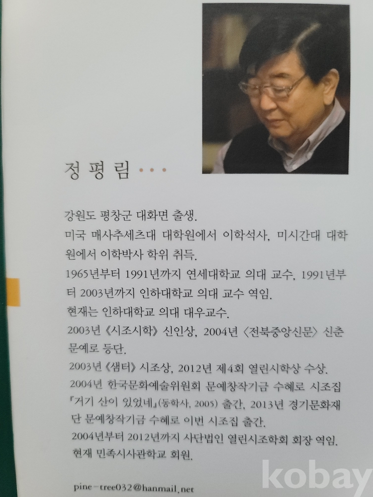 정평림(강원특별자치도 평창: 1938~2023) 시조집.
