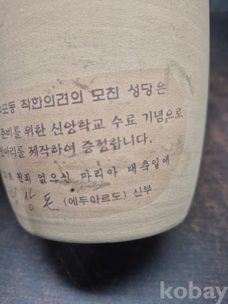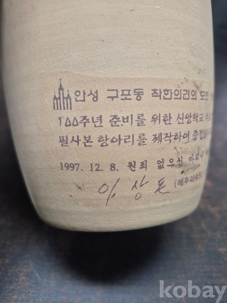 1997년 경기도 안성 구포동 성당 100주년 준비를 위한 신앙하교 수료 기념 필사본 항아리 355번째 항아리 10*10*22