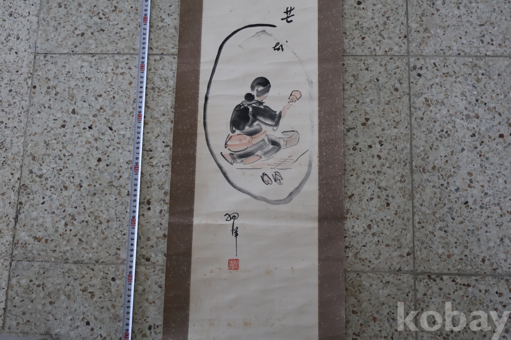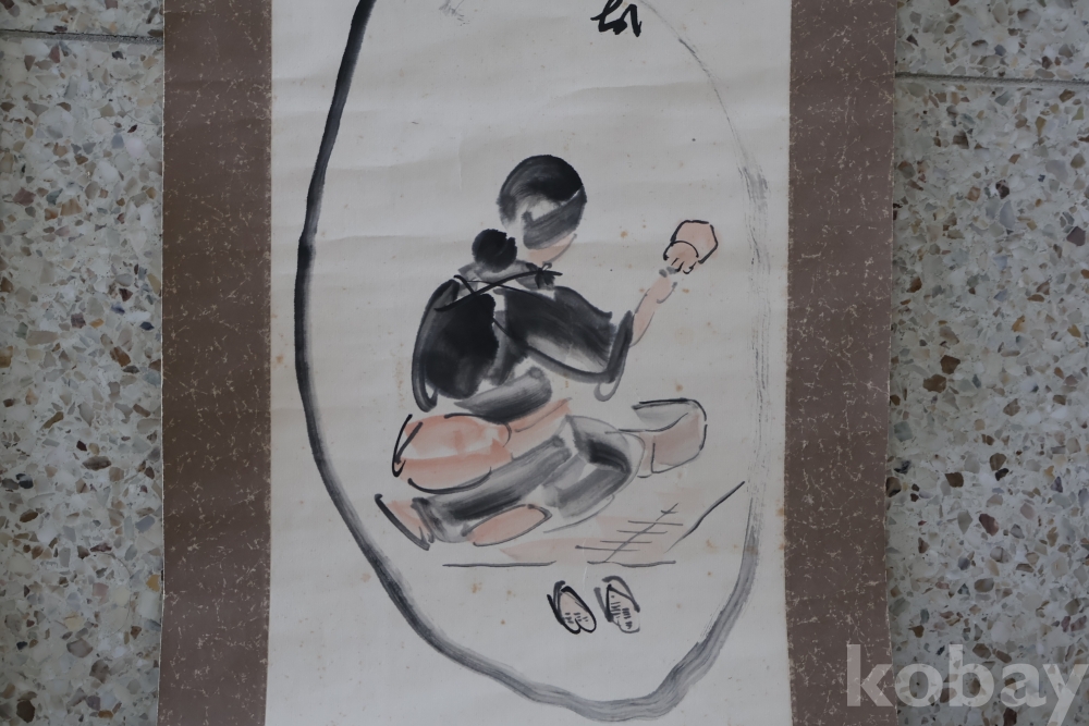 멋지고 특이한 주제를 가진 명화 임니다 일본 여인과 와카?의 글을 가진 족자 이며 세월의 흔적을 가진 명화 임니다