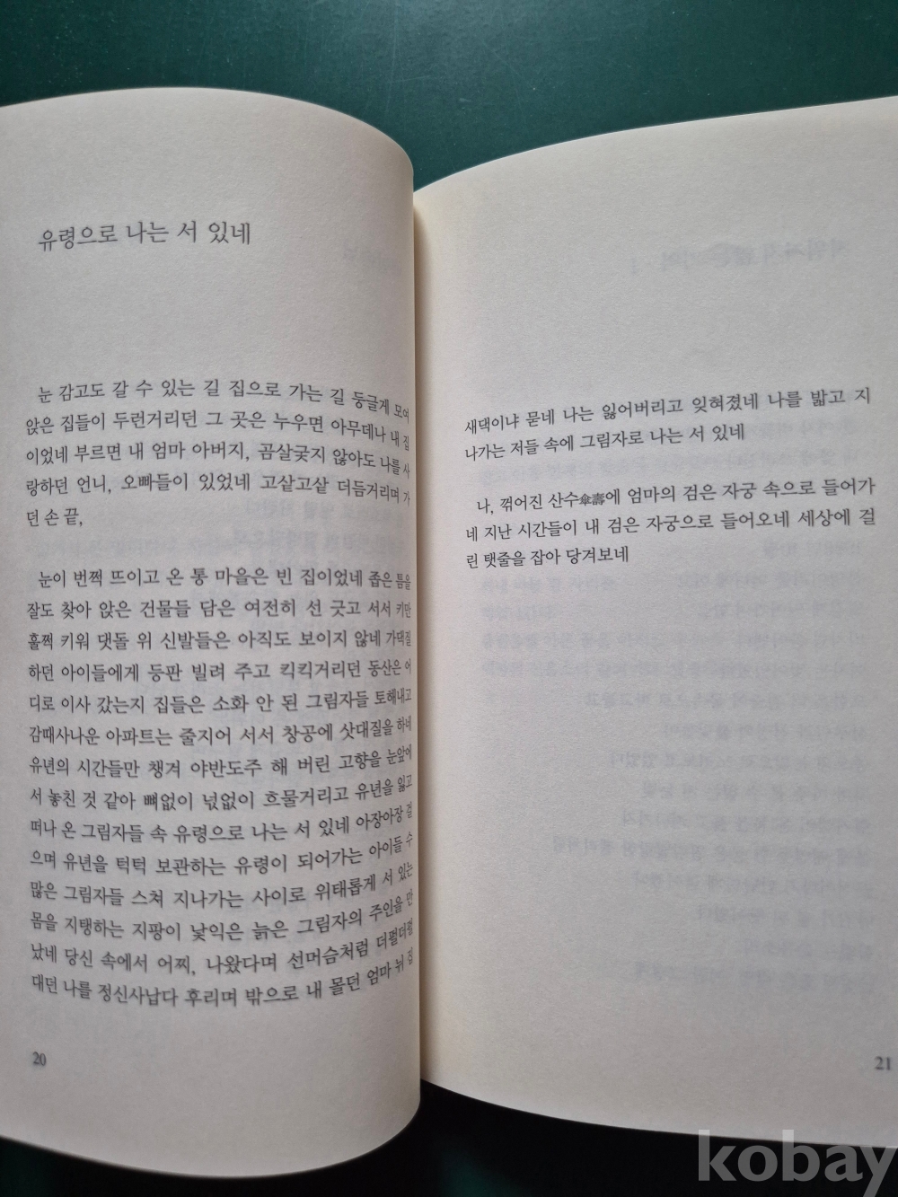 2008년 발간한 첫 시집 『유령으로 나는 서 있네』