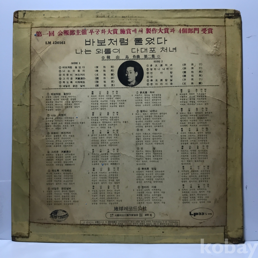 | 자켓상태 | VG : 주름, 접힘, 모서리 찢김 다수 | 음반상태 | VG : 생활 기스 다수, 가벼운 노이즈 존재 | 발매정보 | 알수없음 | 가사지여부 | 무 |
