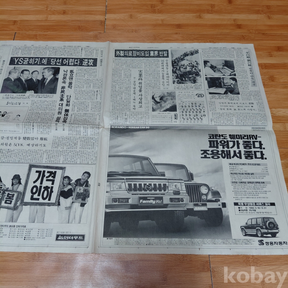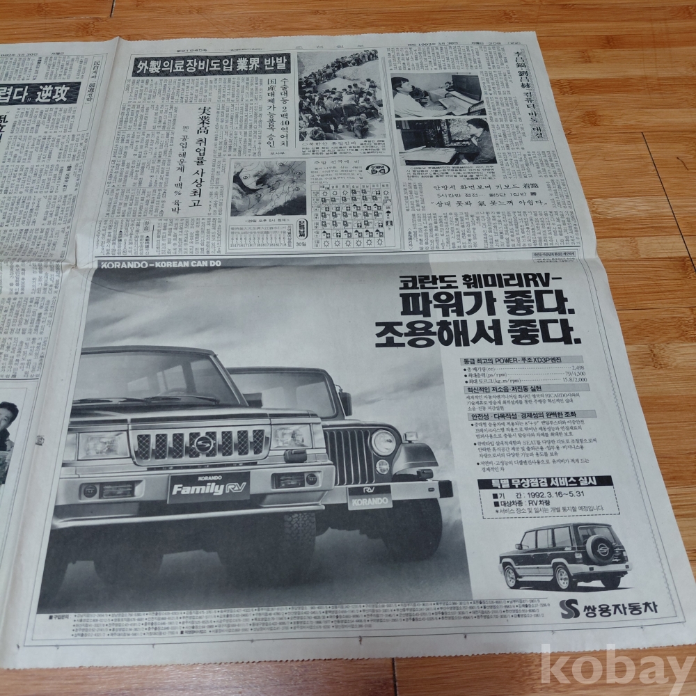쌍용자동차 코란도훼미리 RV광고 조선 92년3월30일 올려드립니다
