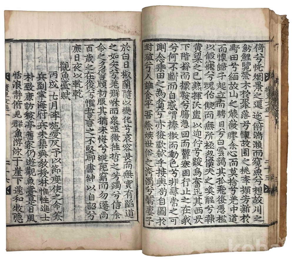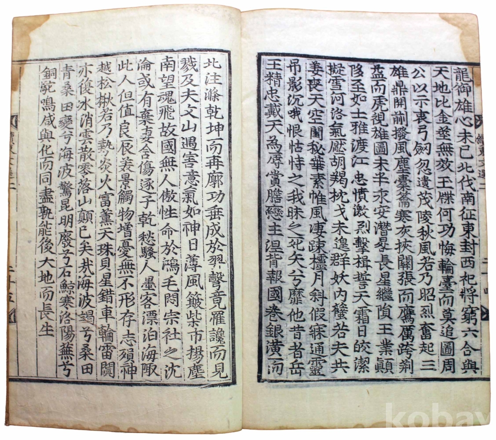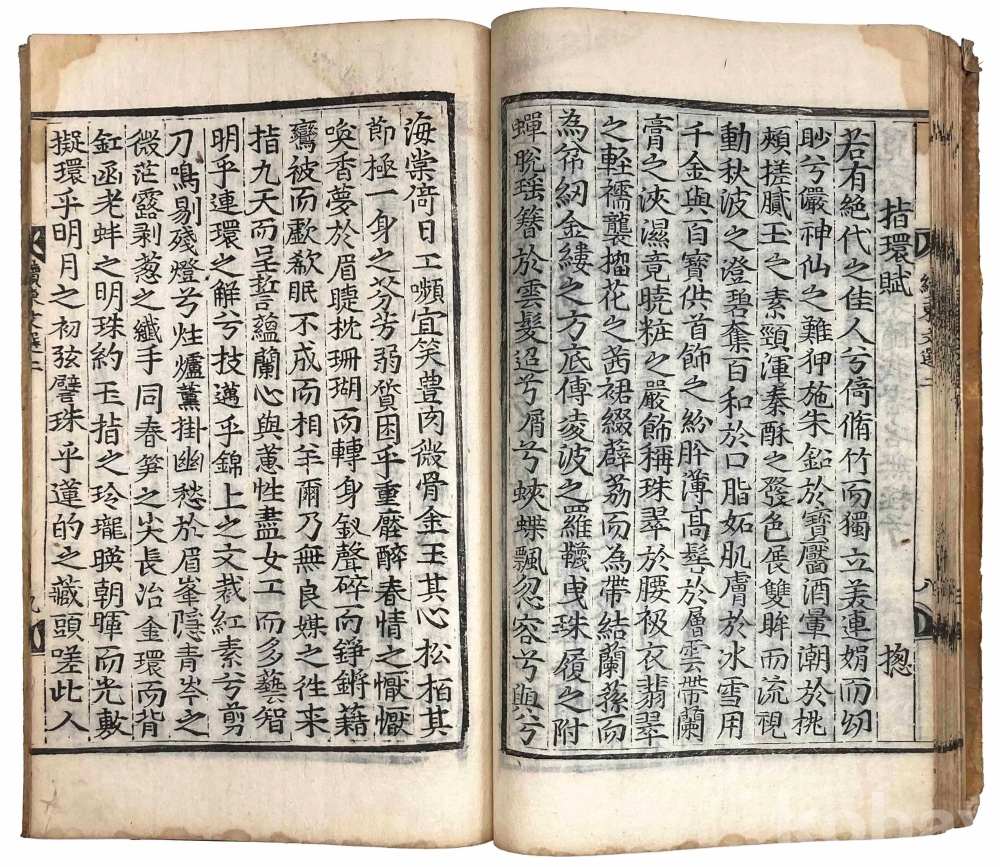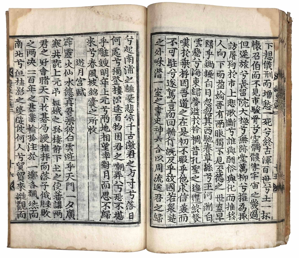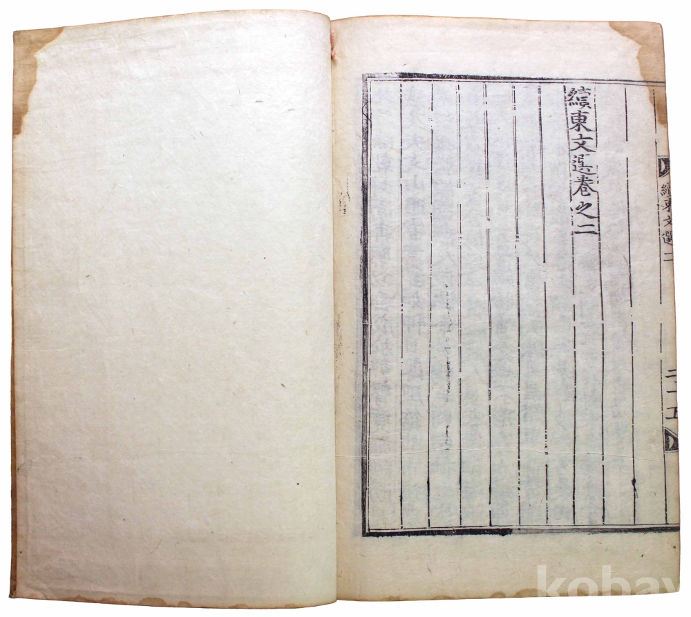 첫 장에 3개의 장서인이 찍힌 훈련도감자 번각본 『속동문선』 권1~2 1책입니다. 같은 질(秩)의 다른 책 표지를 보면 강희 21년(1682) 관문서를 표지로 재활용한 흔적이 있으므로 최소 1682년에 간행된 것으로 추측됩니다.『속동문선』 권1~2는 서(序)와 전(箋)이 처음 나오고, 그 다음에 찬집전후관(撰集前後官)과 권1, 권2로 이어집니다.