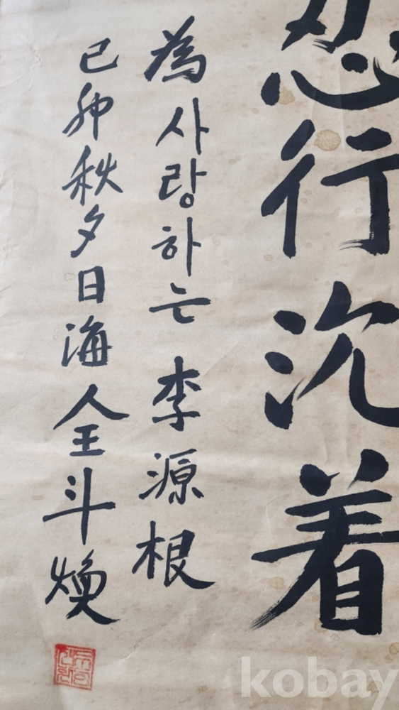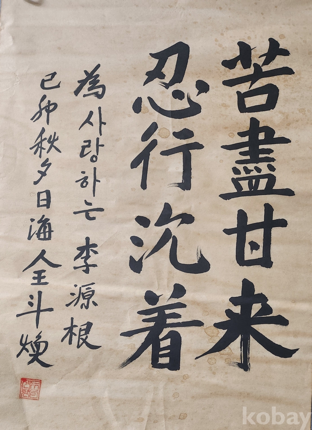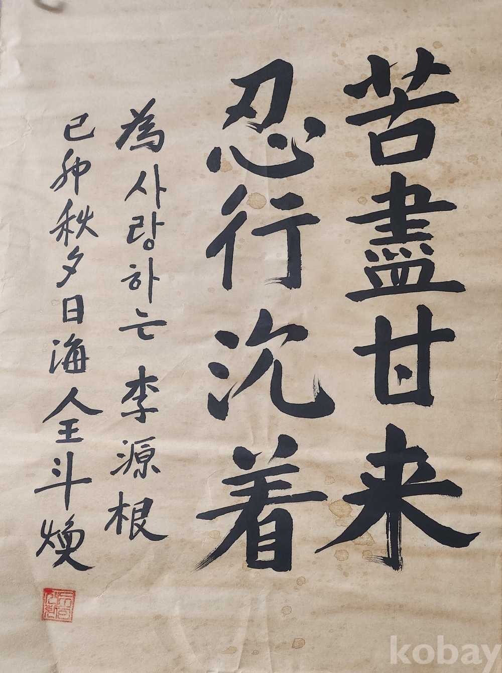 전두환 전 대통령 고진감래 인행침착 苦盡甘來 忍行沈着 미감정 서예품입니다,
