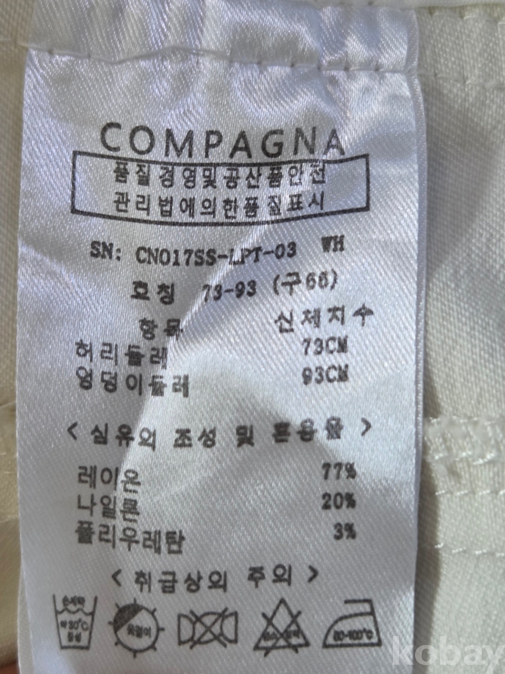 [천원옷장] A-0207 꼼빠냐 화이트 스판팬츠 27인치