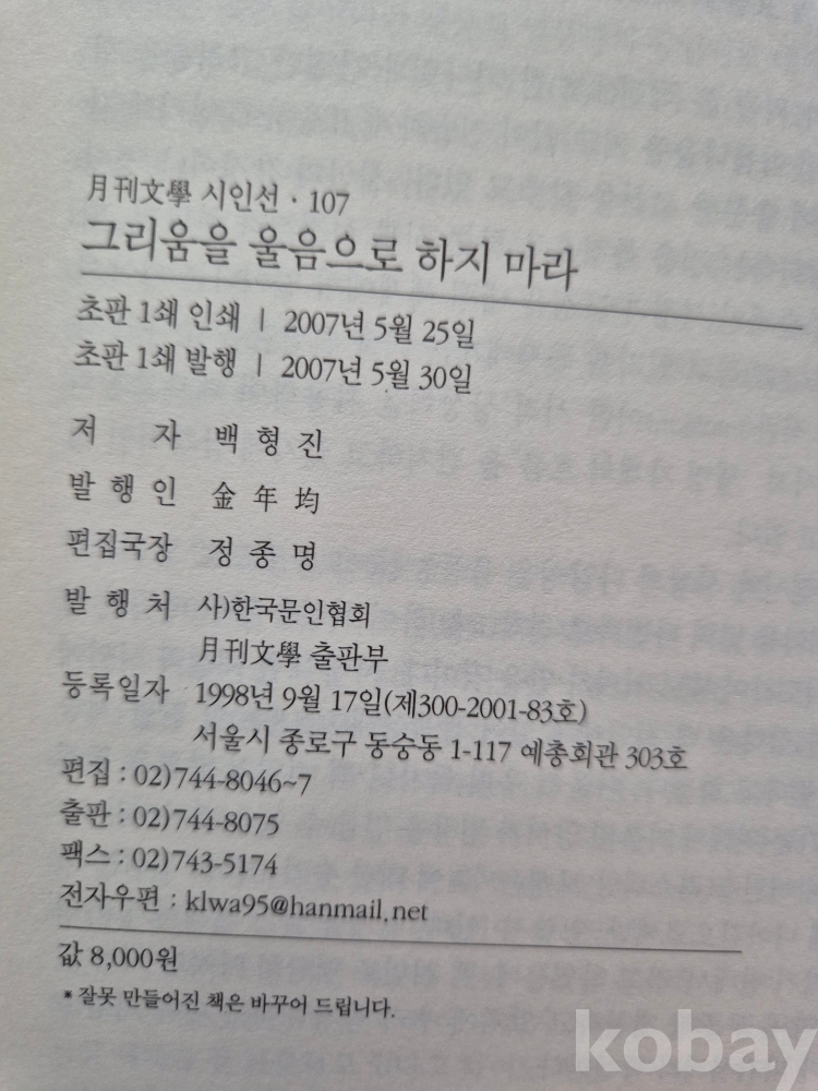 月刊文學 출판부에서 '월간문학 시인선[107]'으로 발행.