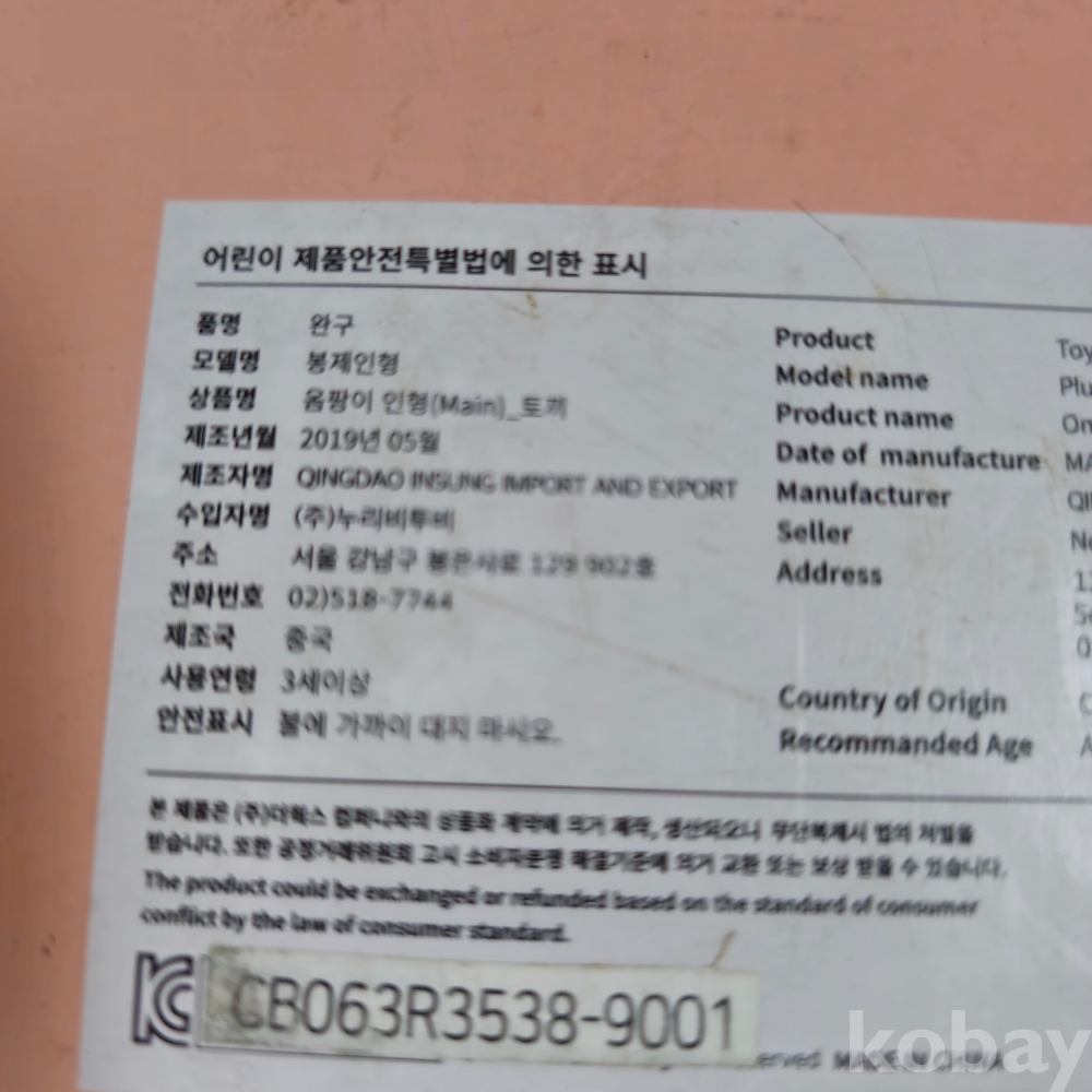 (((인형/피규어/완구))) 2019년 KFC 옴팡이인형 (Main) 토끼 봉제인형 (미사용)