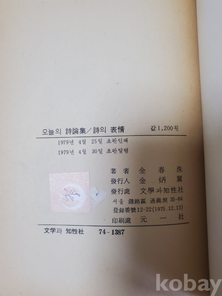 1. 시의 표정, 김춘수, 문학과지성사, 1979년(초판), 151쪽, 상태 상, 사진 참조