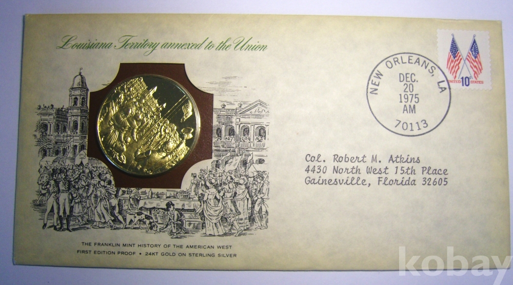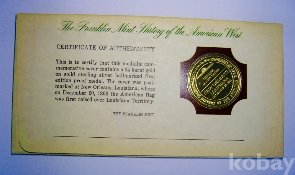 New Orleans 뉴올리언즈 Franklin Mint 기념메달 + 초일봉피 1975년 (24 KGP)