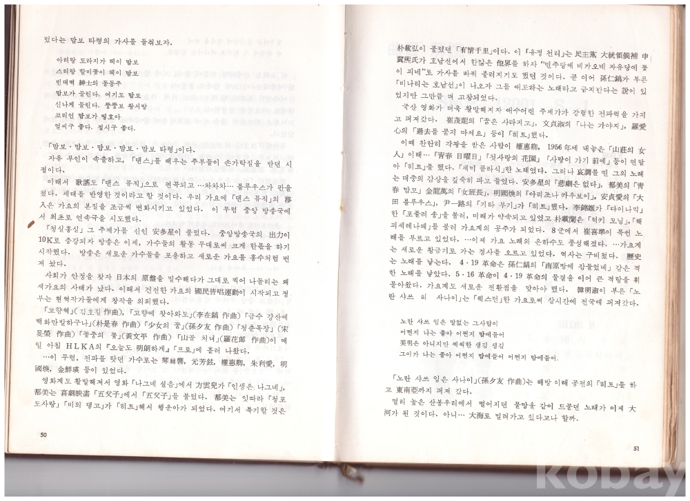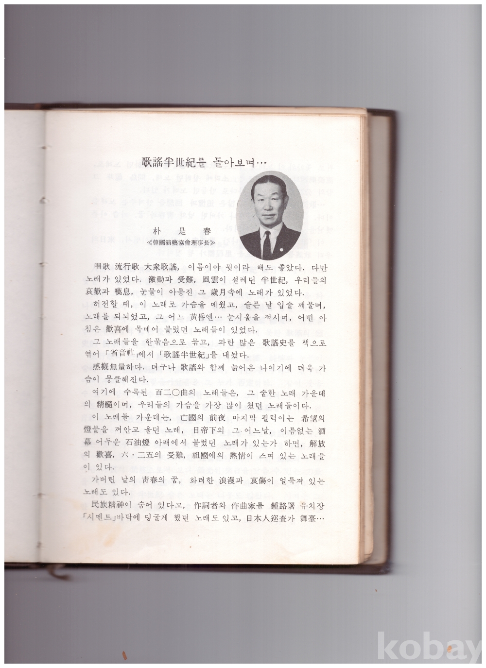 당시 박시춘 한국연예협회이사장의 '가요반세기를 돌아보며...' 글과