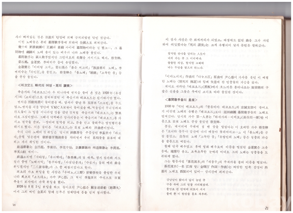 우리나라 가요사를 요람기 / 황금기 / 수난기 / 재생기 / 이렇게 정리했습니다.