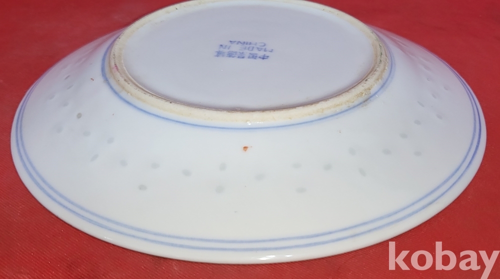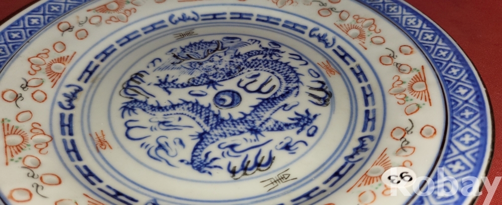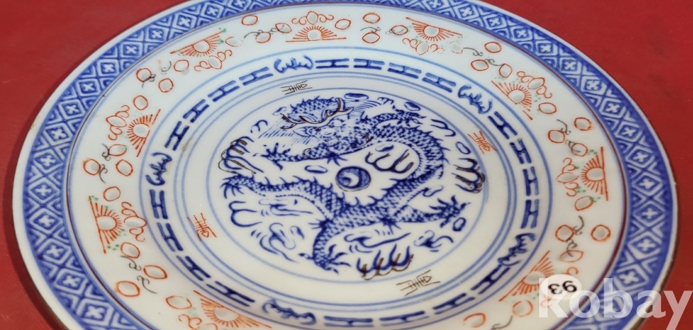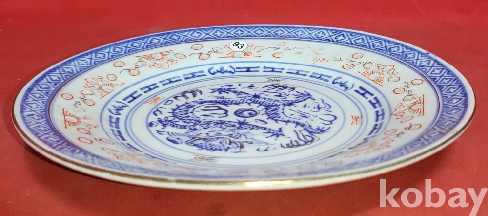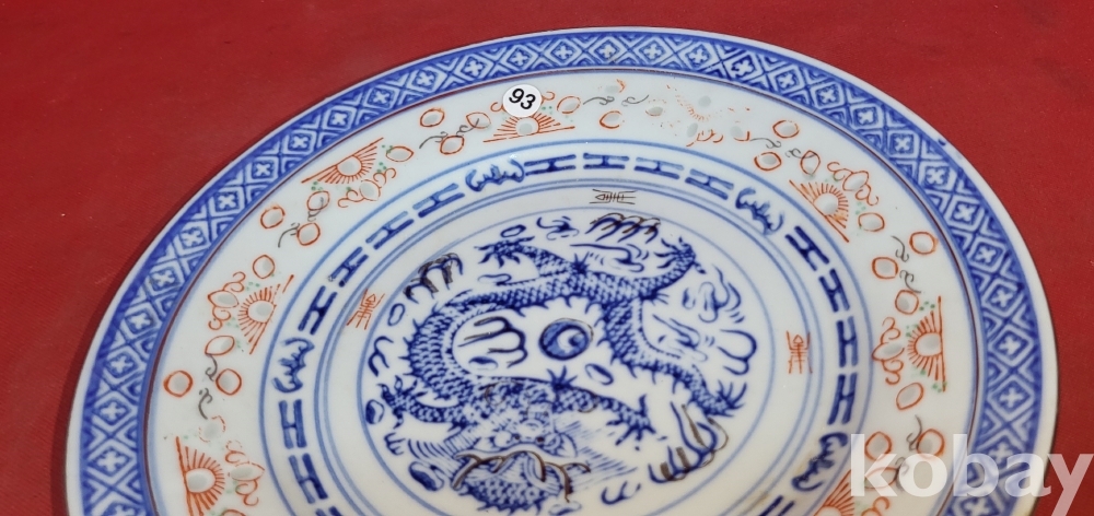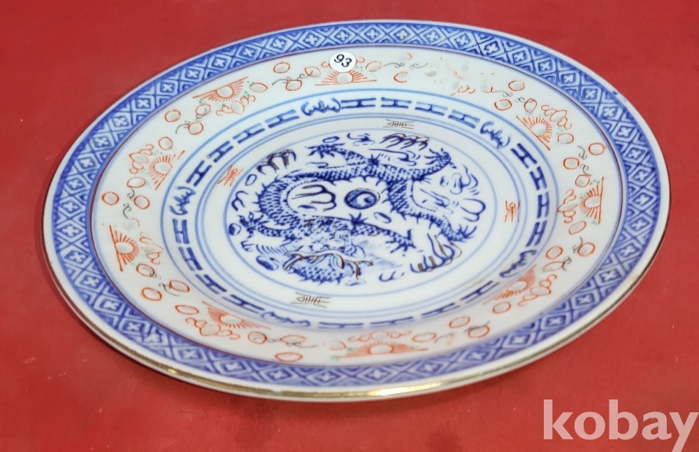 100년 이상의 연대 경덕진요 청화 유리홍 용문양 금채 접시입니다,